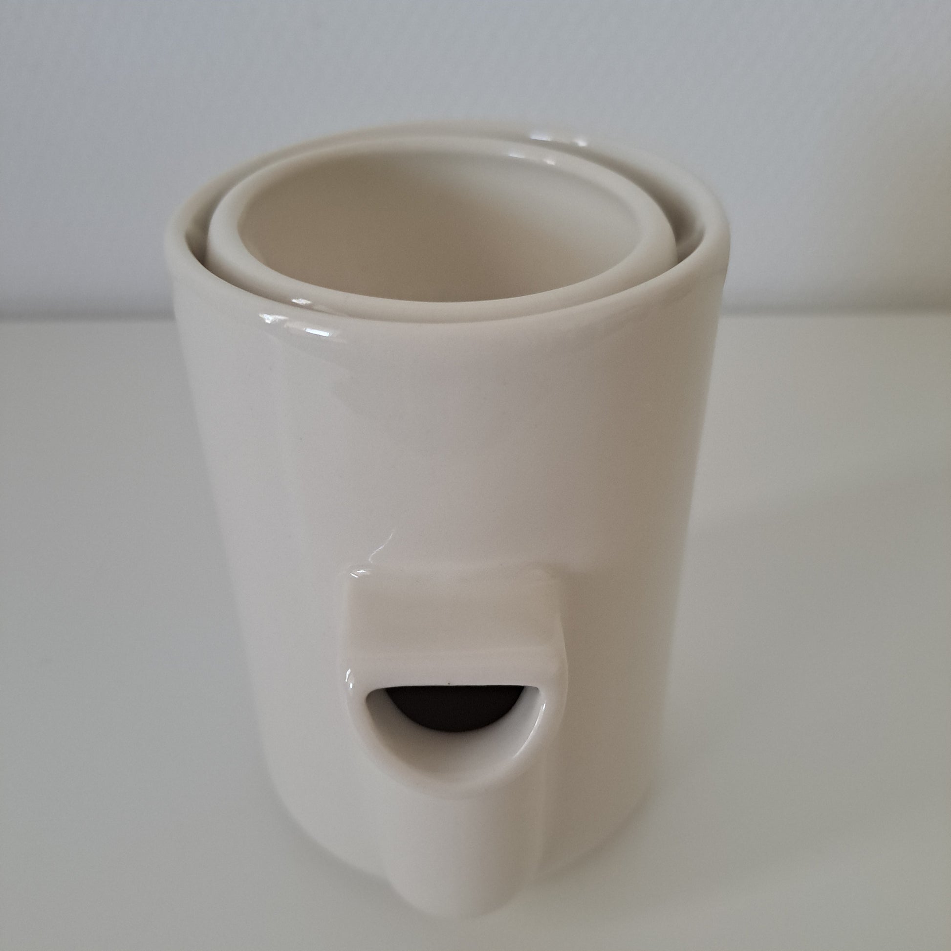 The sugar bowl is easily removable for filling and cleaning the creamer. Made of white ceramic, Newton is dishwasher safe.
