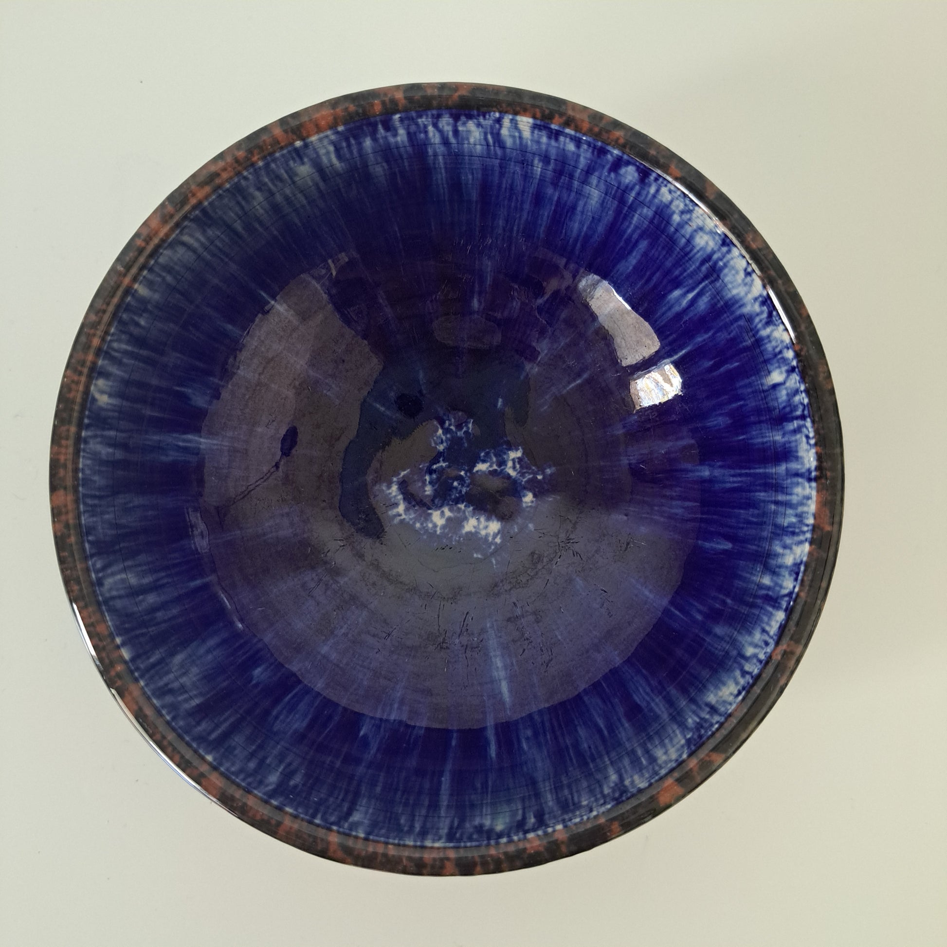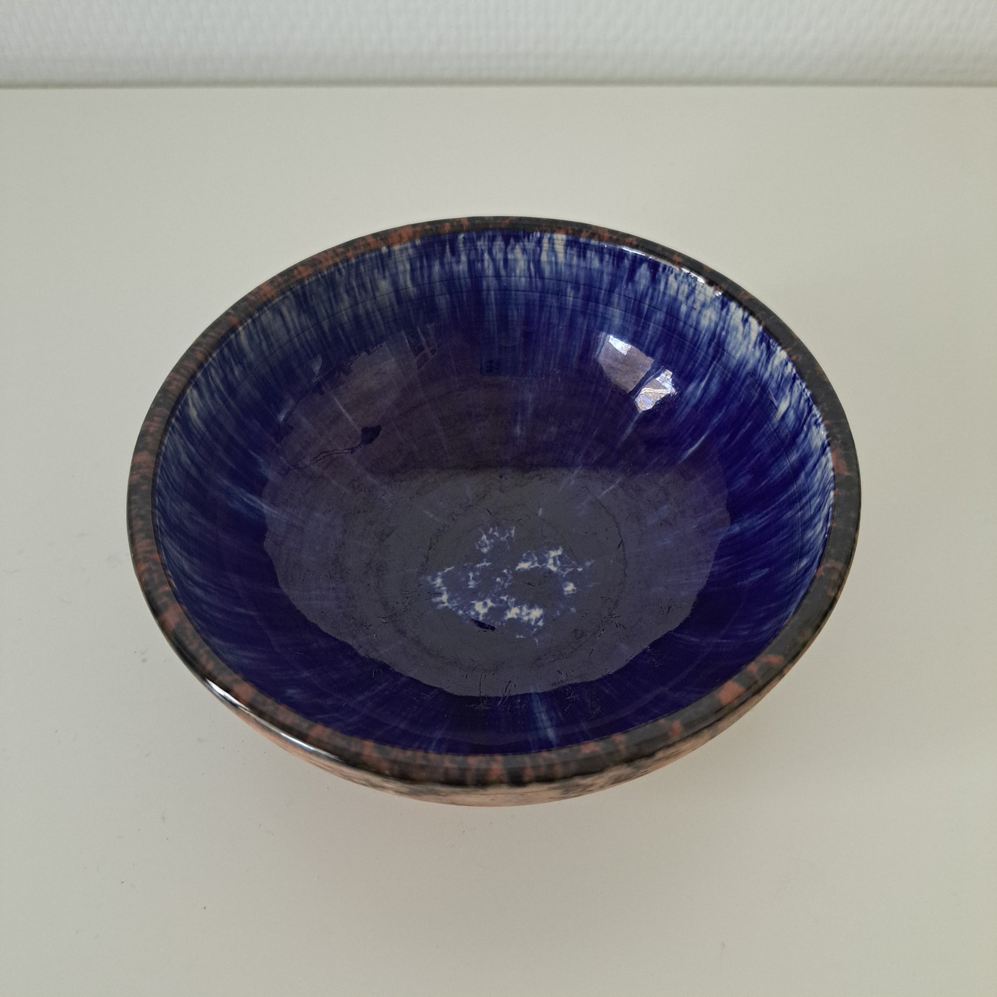 A bowl from the 1970s, made by Turku Ruukkkupaja and designed by Jack Marre. The bowl has a stunning blue glaze.