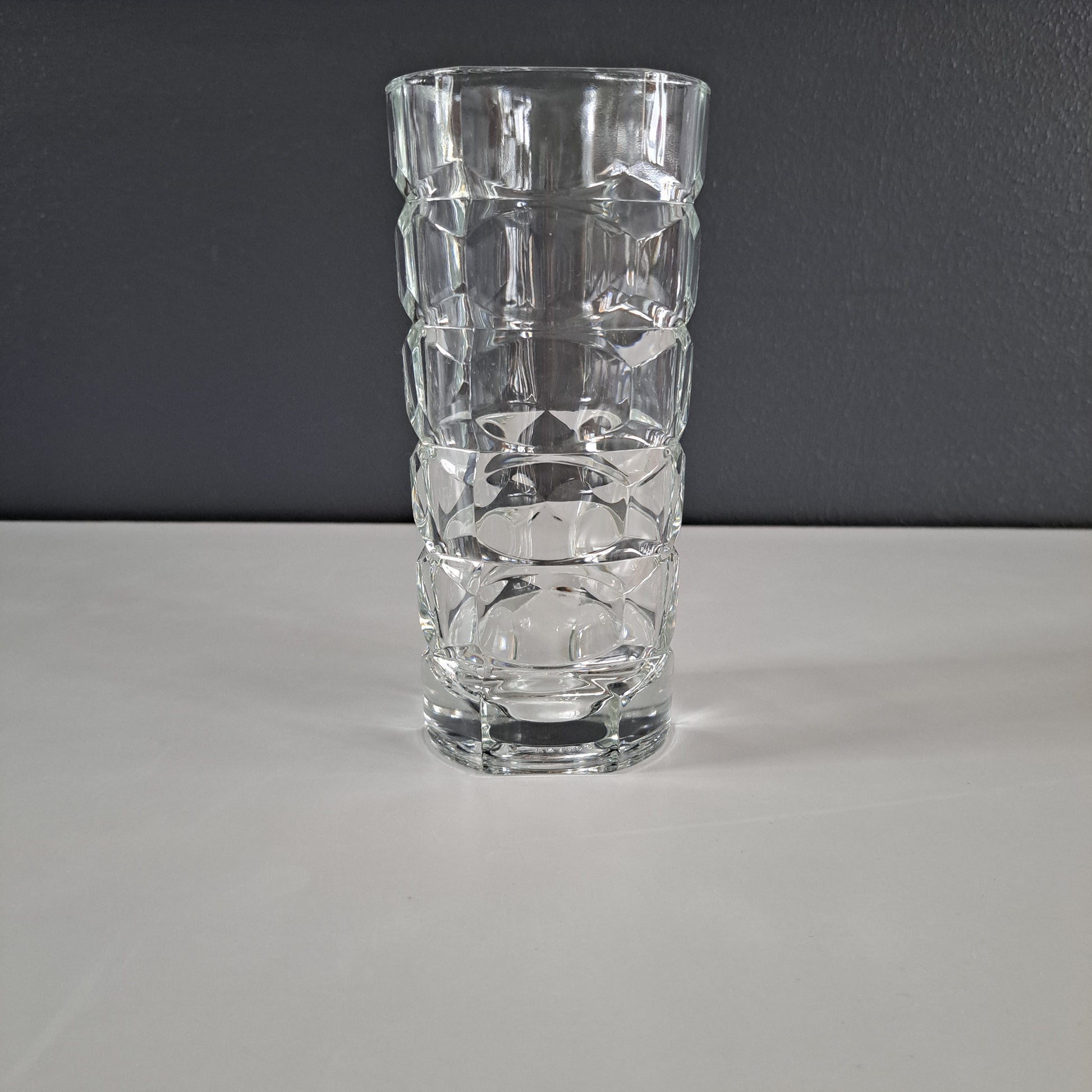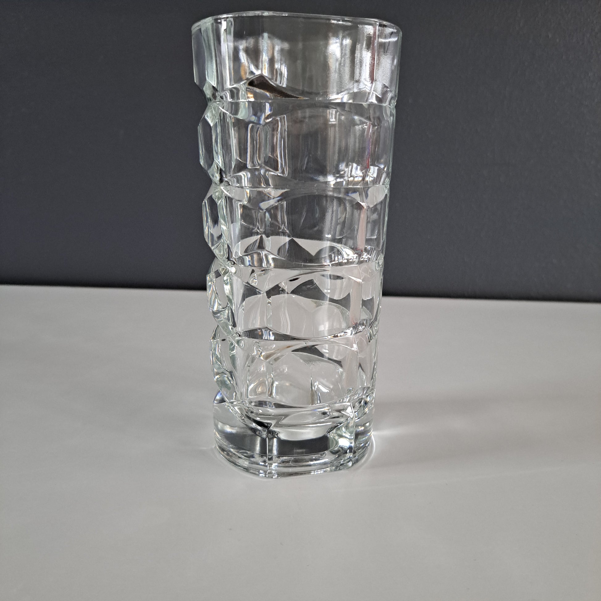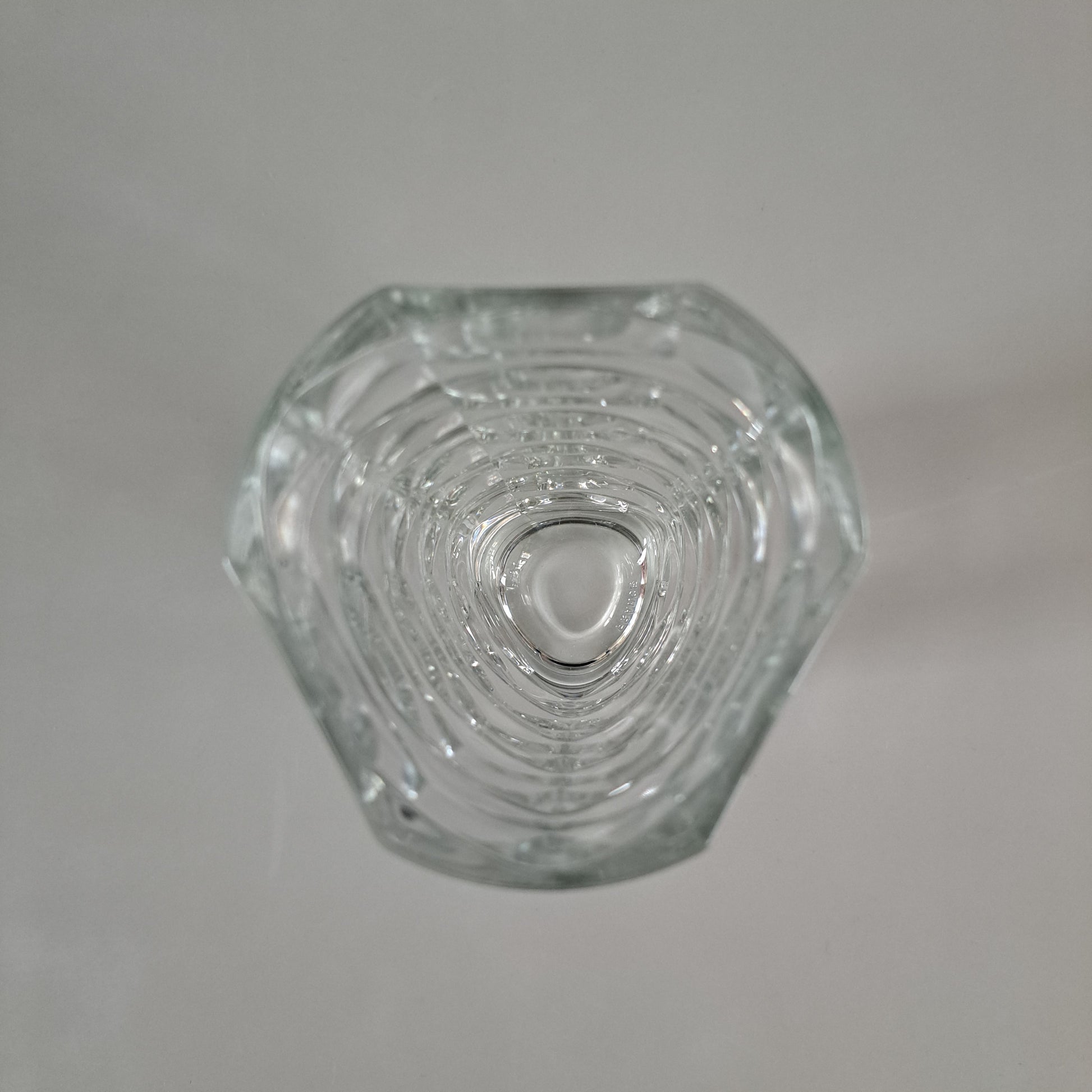 Triangle-shaped, French vintage vase made of clear crystal glass.