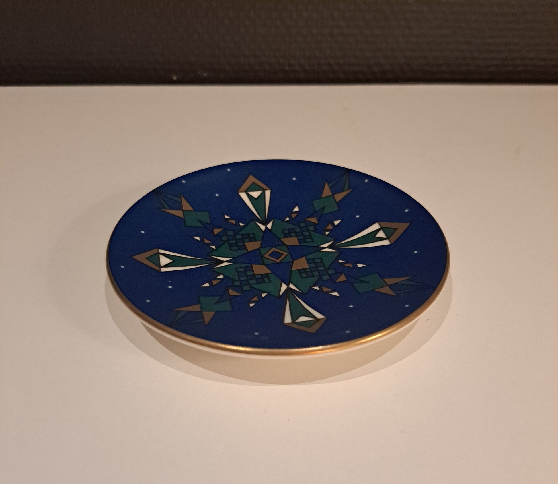 Arabian kaunis, pieni Joululautanen. Lautanen on väriltään sinivihreä ja se on varsinaisesti seinälautanen, mutta toimii myös esim.lasinalustana.