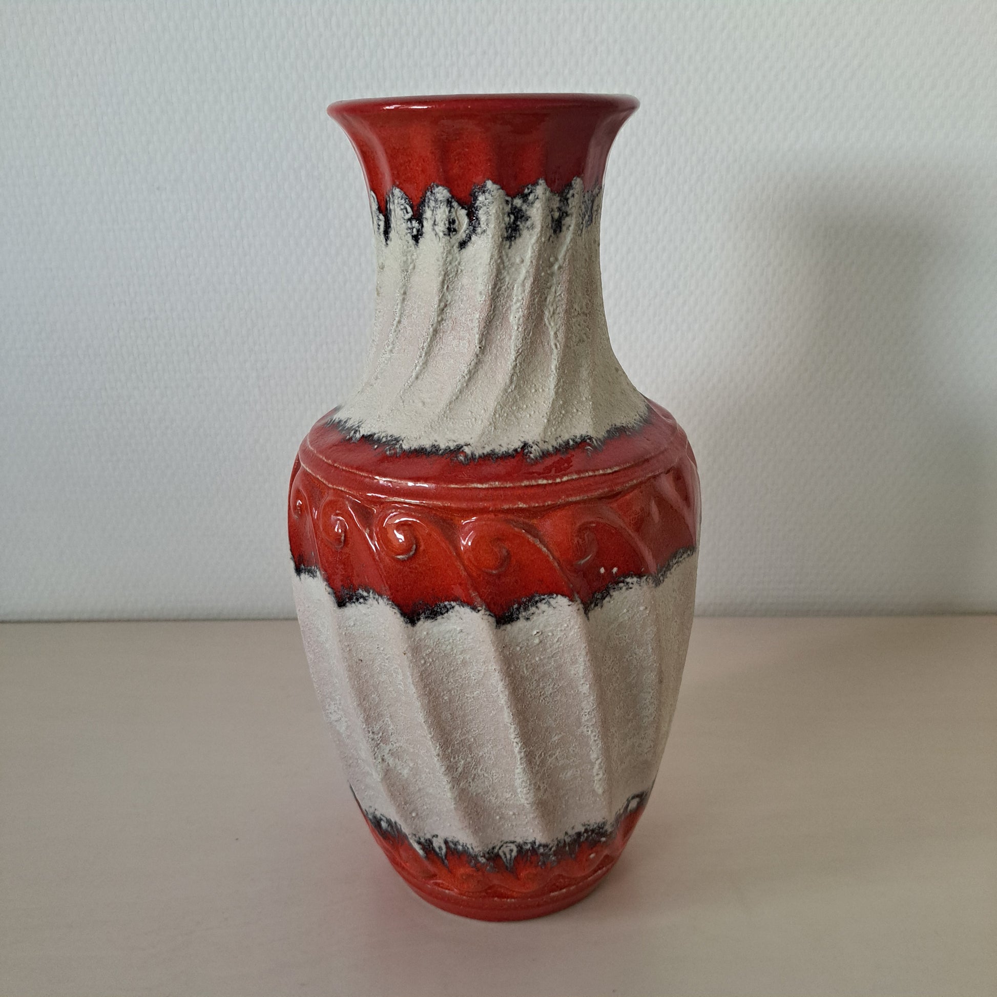 Saksalaisen Carstens Thönnieshofin viehättävä lattiavaasi vintage hengessä! Vaasi on väriltään beige ja poltetun oranssin sävyinen. Fat lava-tyyli