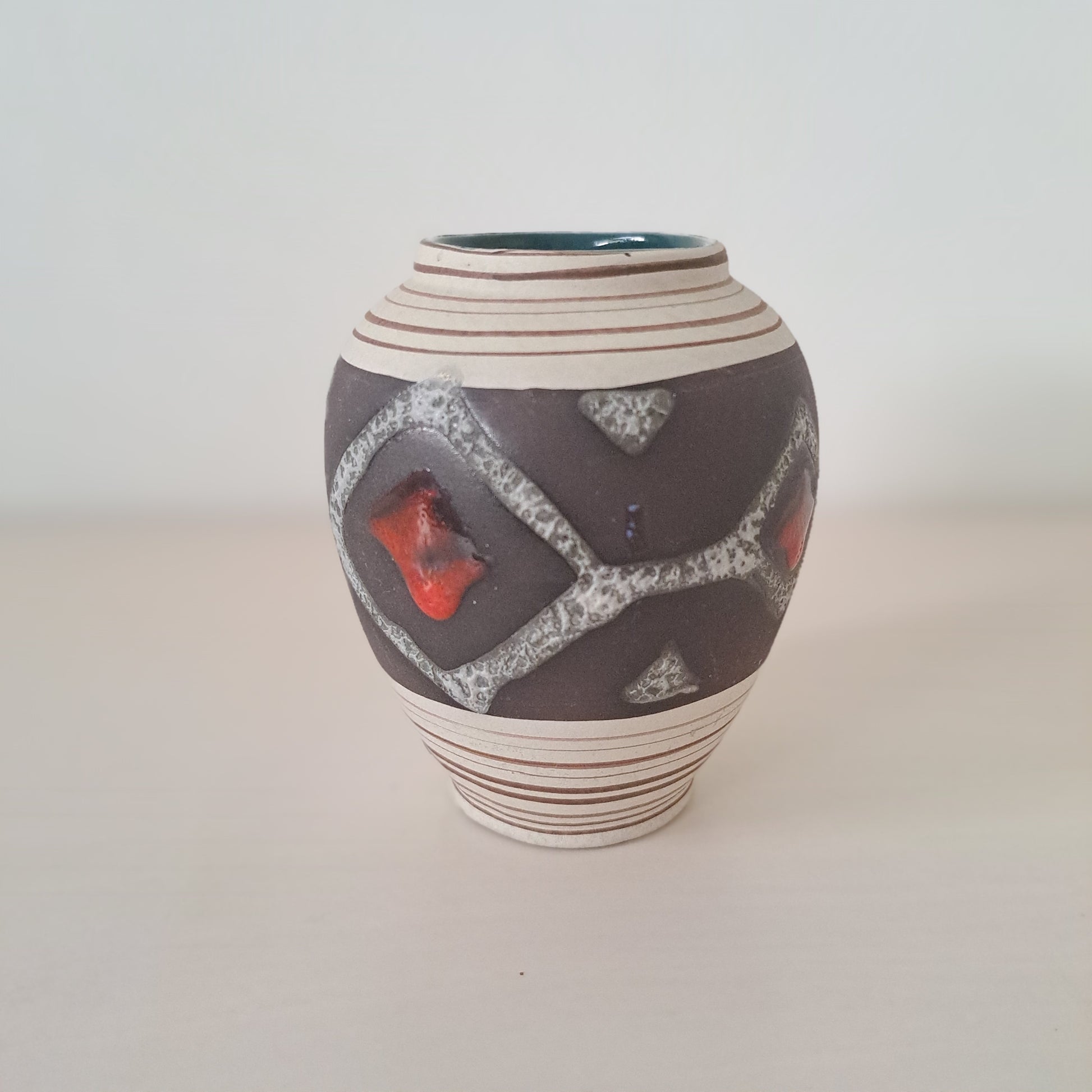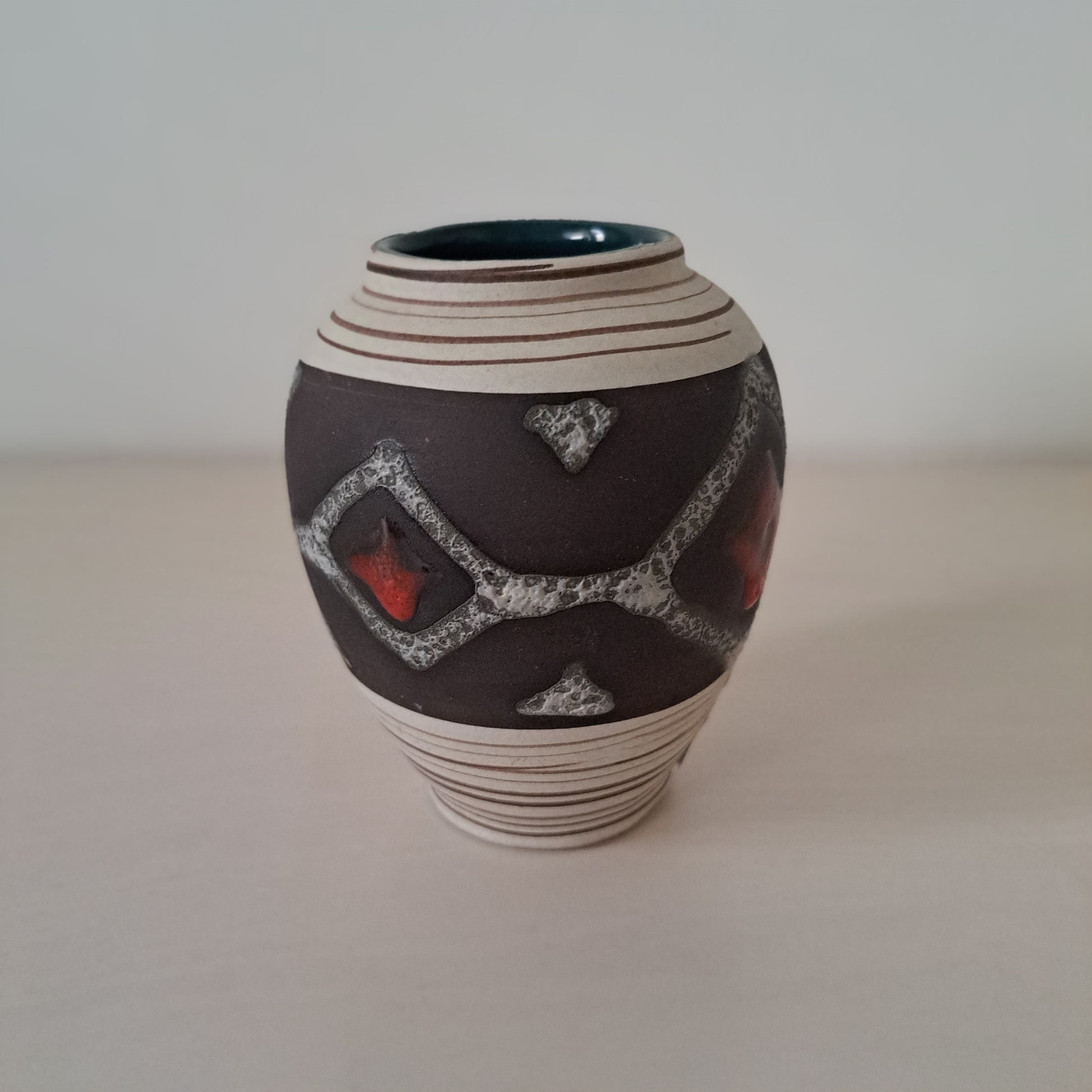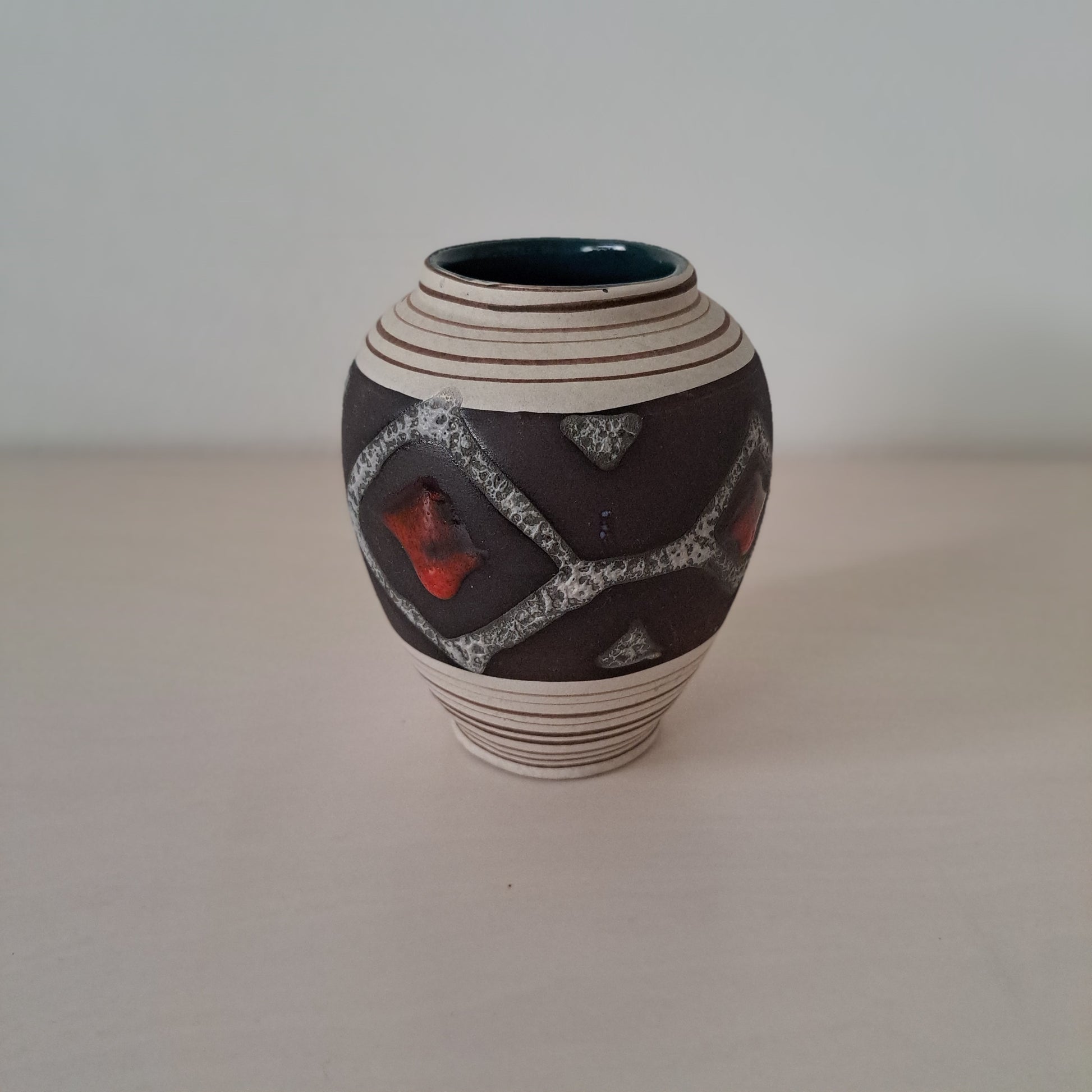 Saksalaisen Carstens Thönnieshofin valmistama tyylikäs, pieni maljakko. Fat lava-tyyli.
