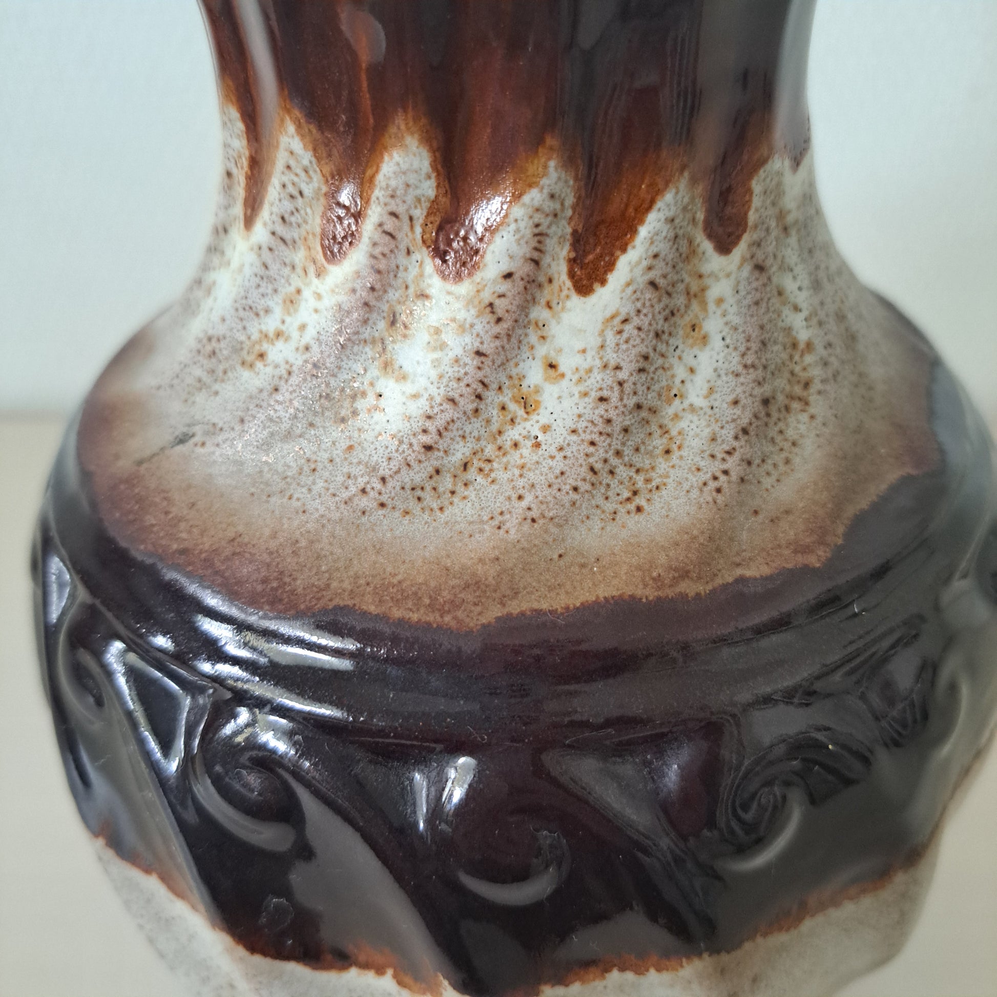 Saksalaisen Carstens Thönnieshofin maanläheisin värein valmistama ruukku, jonka muotoilu tuo mieleen antiikin Kreikan astiaston. Fat lava-tyyli.