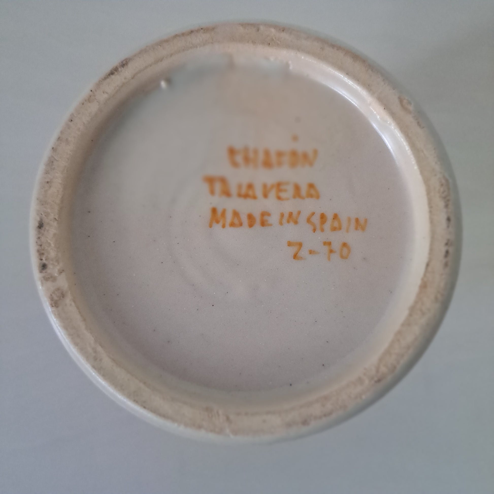 Espanjalaisen Chacon Talaveran valmistama kaunis keramiikkamaljakko 1970-luvulta. Maljakko on valmistettu ja maalattu käsityönä. Pohjassa on aitousmerkinta. Harvoin tarjolla!