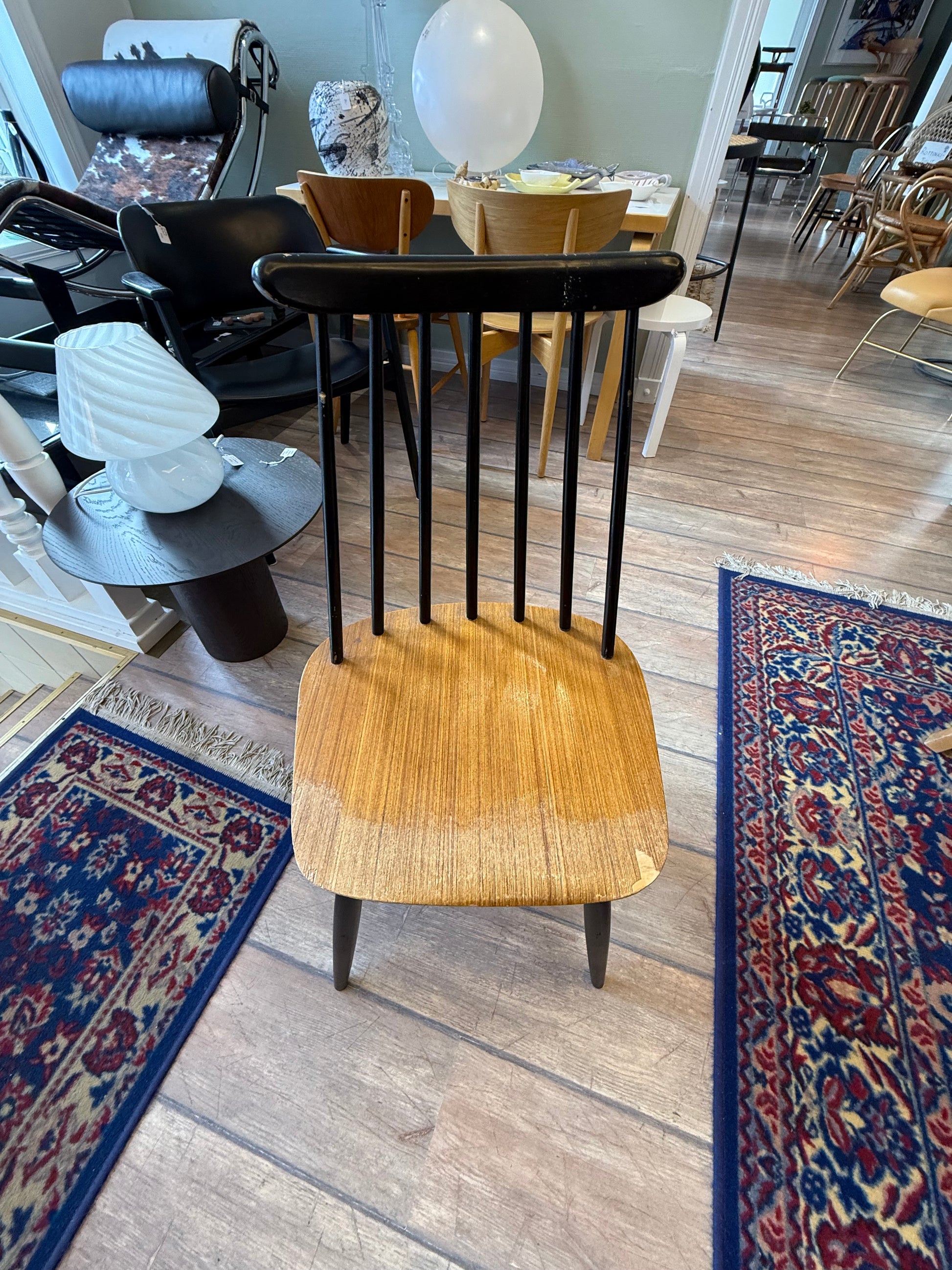 Iki-ihana ja sympaattinen 60-luvun Fanett-pinnatuoli, seitsemän pinnaa. Malli on ruotsalaisen Edsbyverkenin muunnos Tapiovaaran suunnittelemasta Fanett 65 T -mallista.