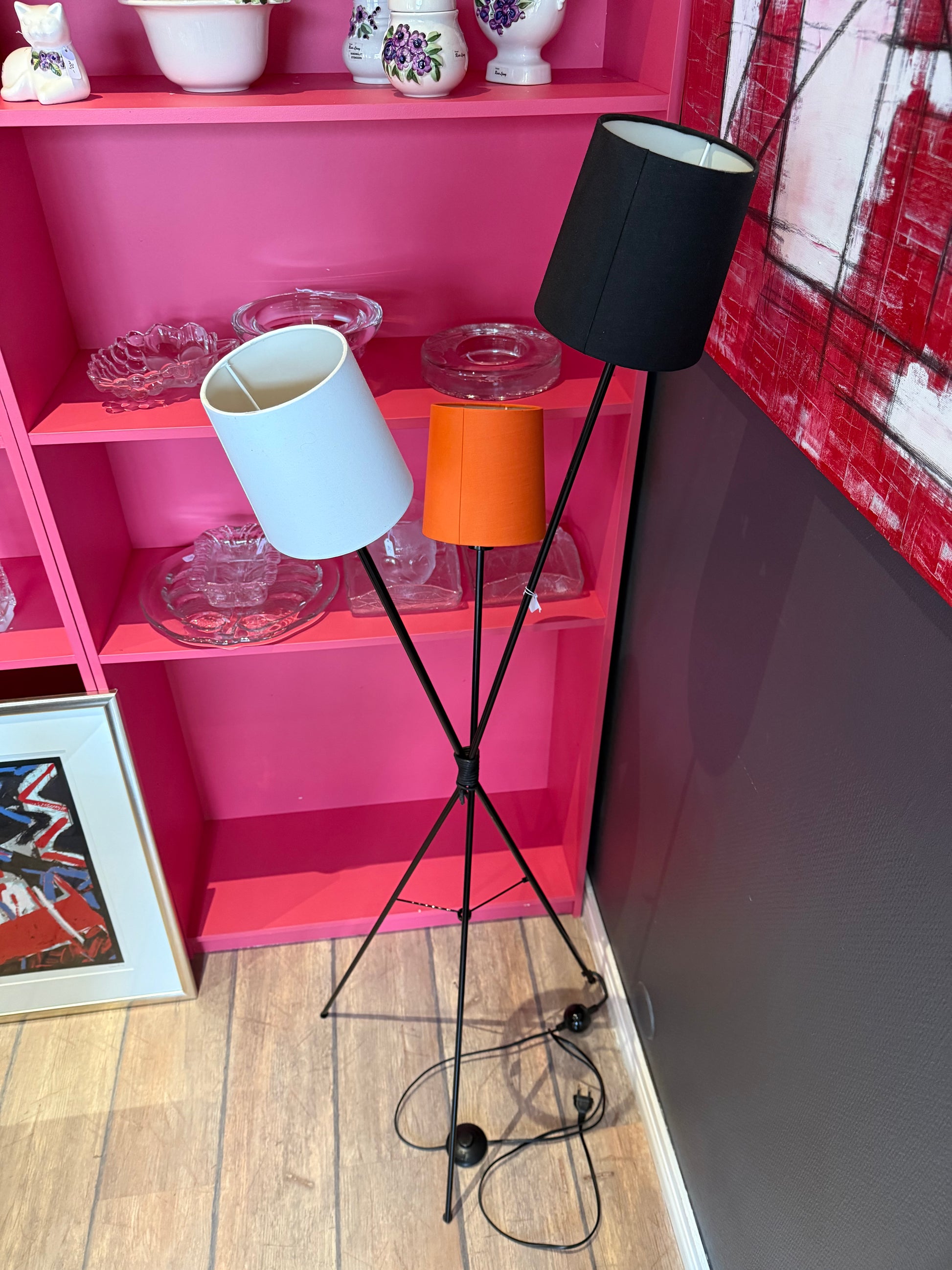 Tanskalaisen Frandsen Lighting A/S, "Dexter", lattiavalaisin on tyylikästä ja elegantti valaisin. Sen runko on valmistettu mustasta metallista ja siinä on kolme erillistä valonlähdettä. Jokaisessa valonlähteessä on erivärinen, tekstiilivarjostin; musta, valkoinen ja murrettu oranssi.