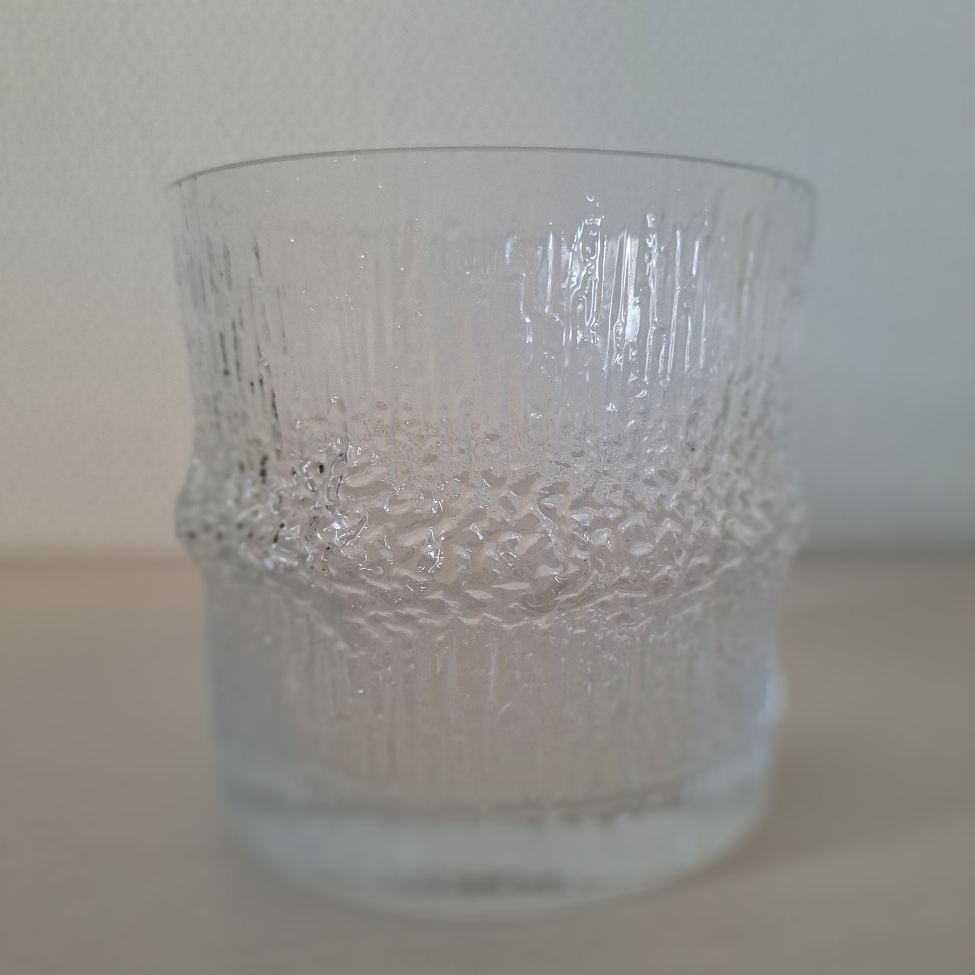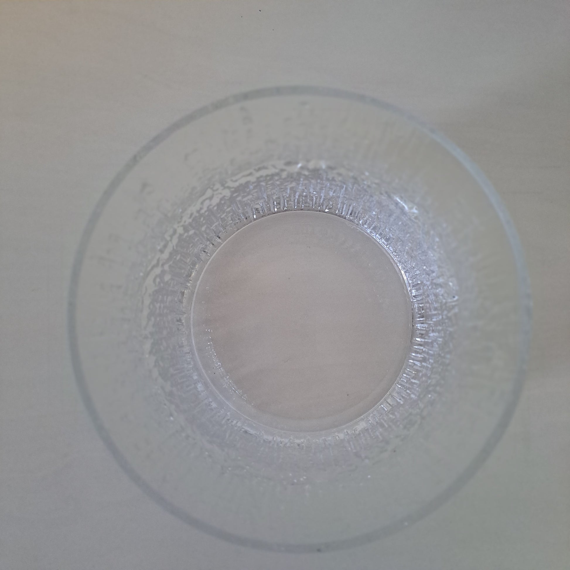 Iittalan lasitehtaan valmistama ja Tapio Wirkkalan suunnitteleman ihastuttava Niva-sarjan jääpalakulho. Lasi on kirkasta ja sen pinnassa on rouhea, jäätä muistuttava struktuuri Niva oli IIttalan tuotannoss pääasiallisesti vuosina 1972-1992