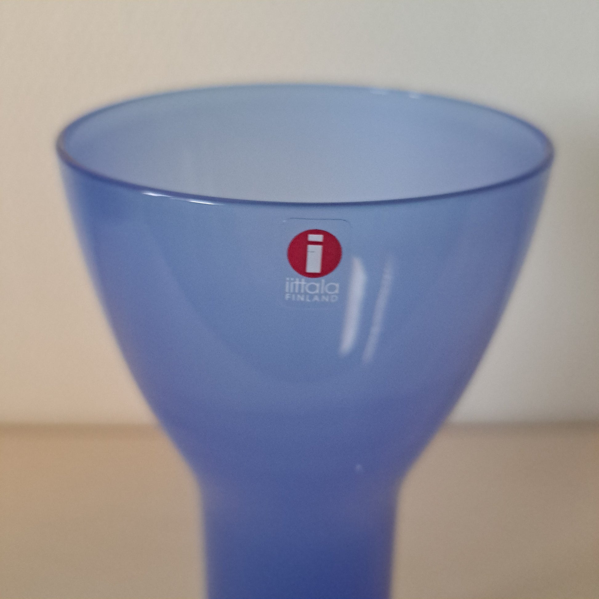 Iittalan kauniin sininen maljakko nimeltään Saaren neidot. Iittalan tarra jäljellä ja pohjassa uniikki konesigneeraus...