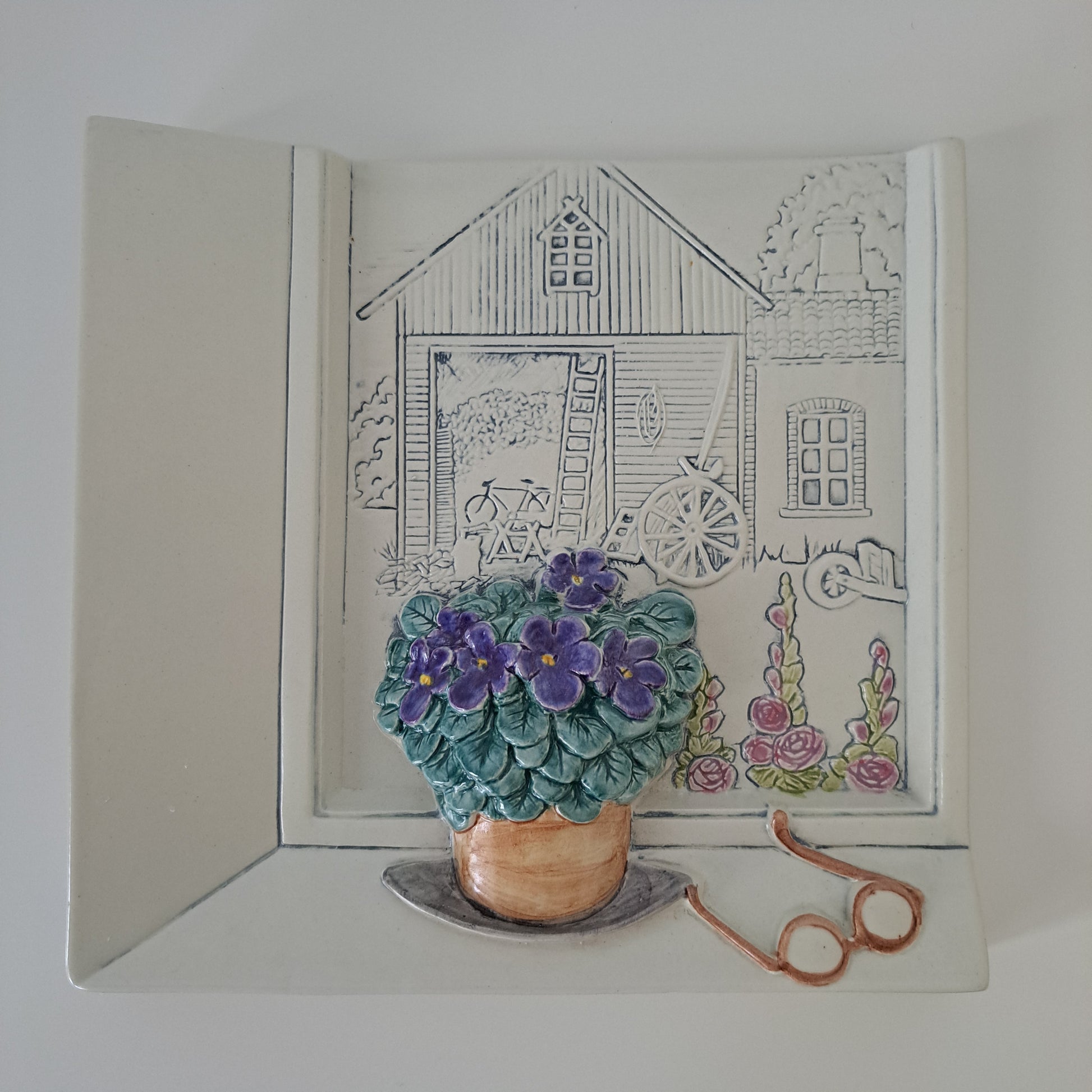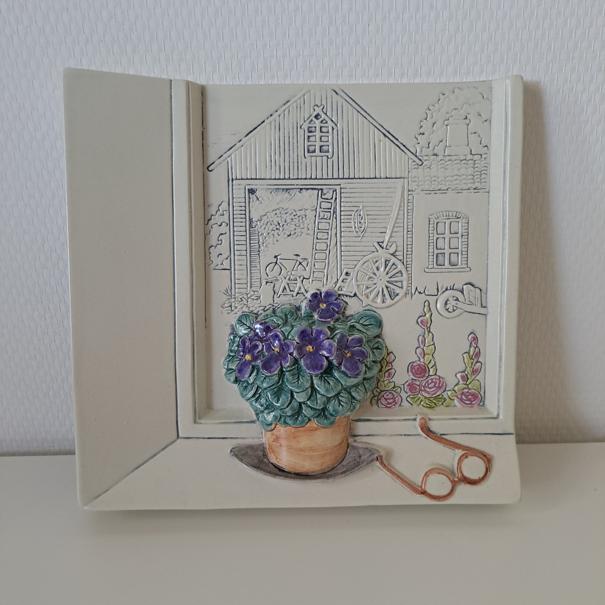 Ruotsalaisen Jie Gantoftan valmistama ja Aimo Nietosvuoren suunnittelema kaunis ja sympaattinen "näkymä ikkunasta". Tässä keramiikkataulussa on ihastuttava kolmiulotteisuuden tuntu!