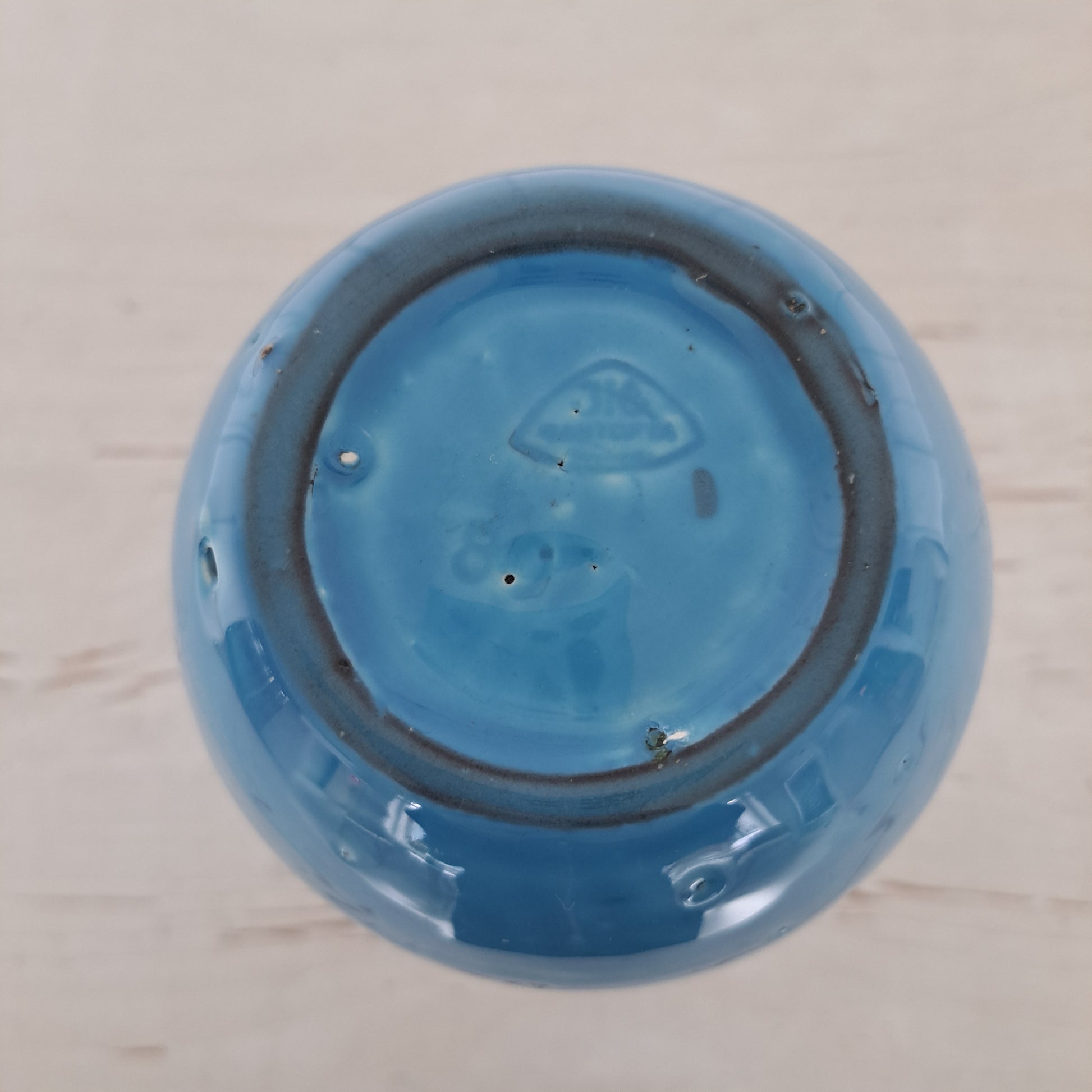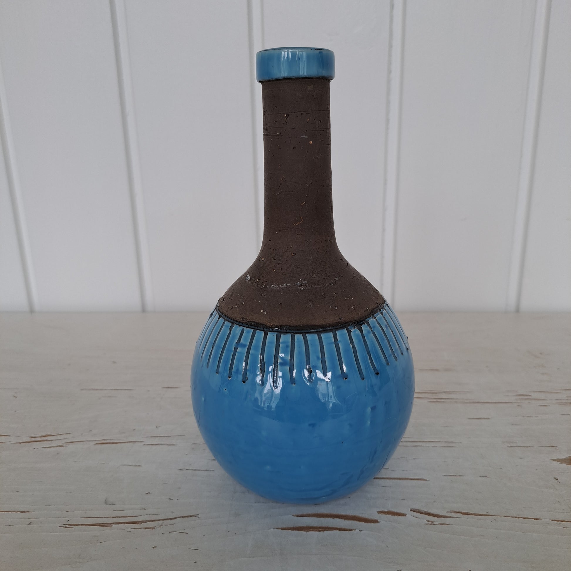 Ruotsalaisen Jie Gantoftan valmistama viehättävä maljakko, jossa sininen alaosa on lasitettua keramiikkaa ja keskellä on harmaanruskea lasittamaton osa. Erittäin kaunista muotoilua 1960-luvulta!