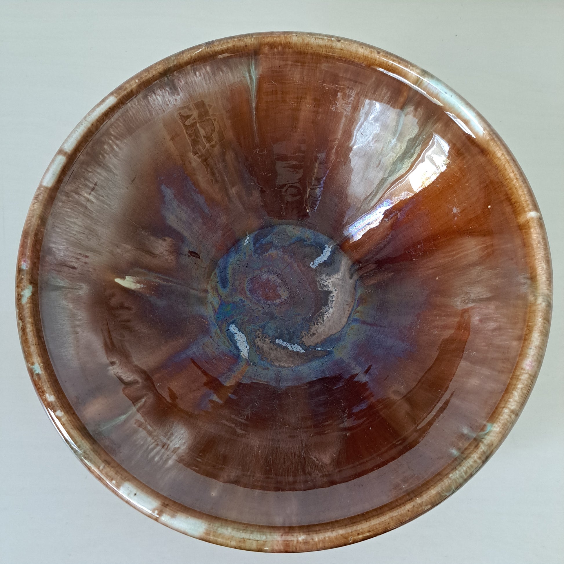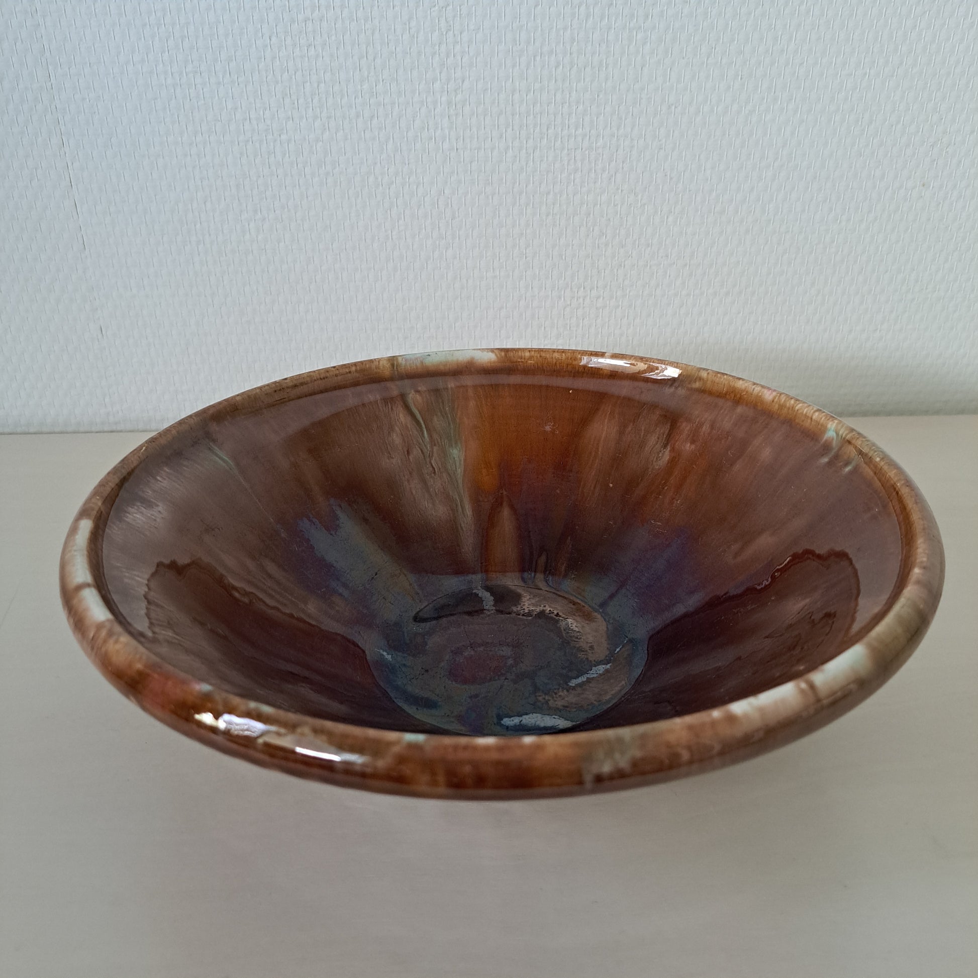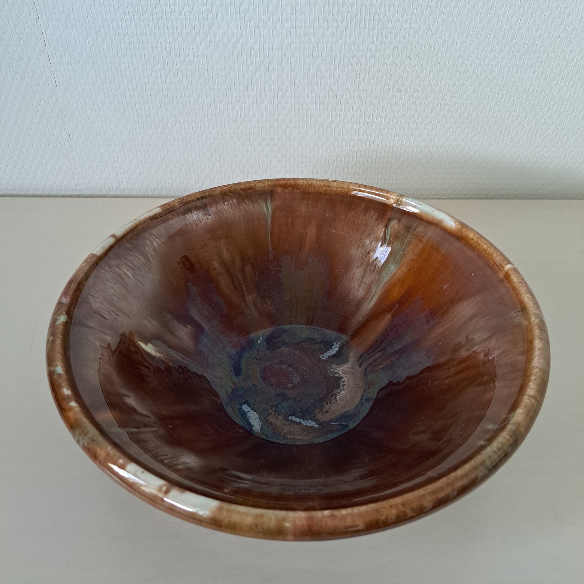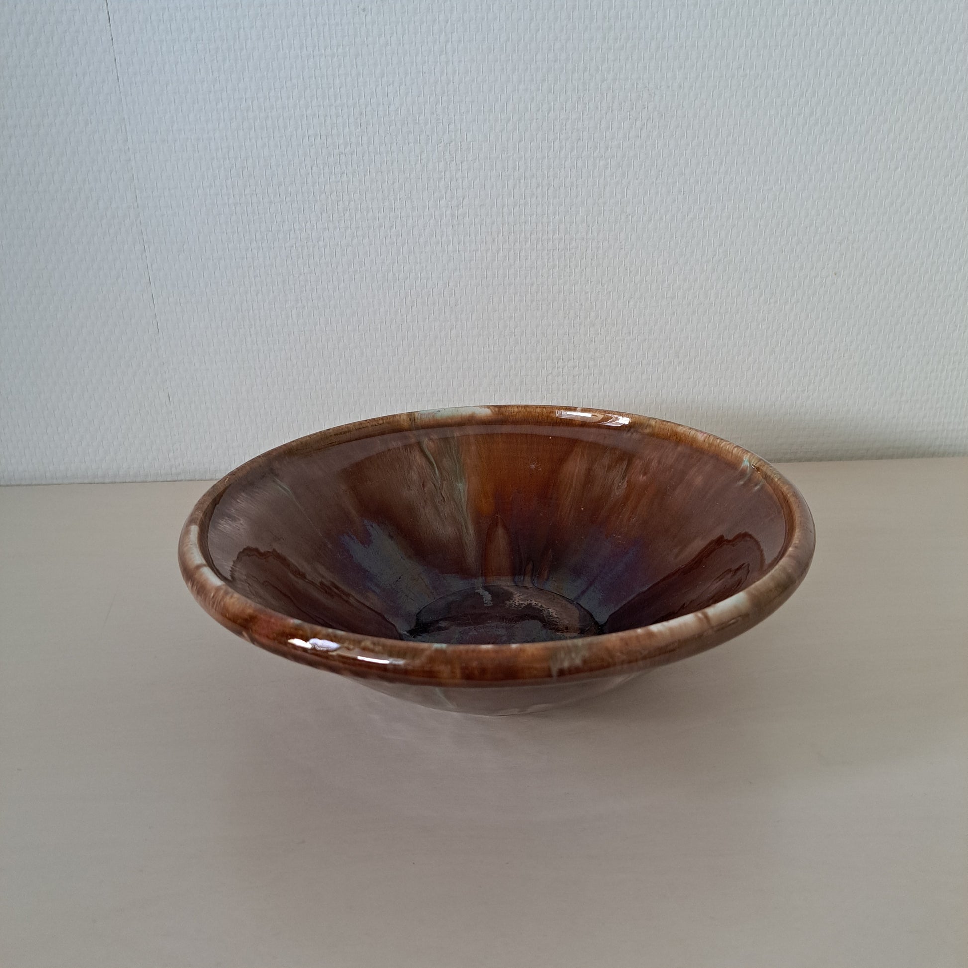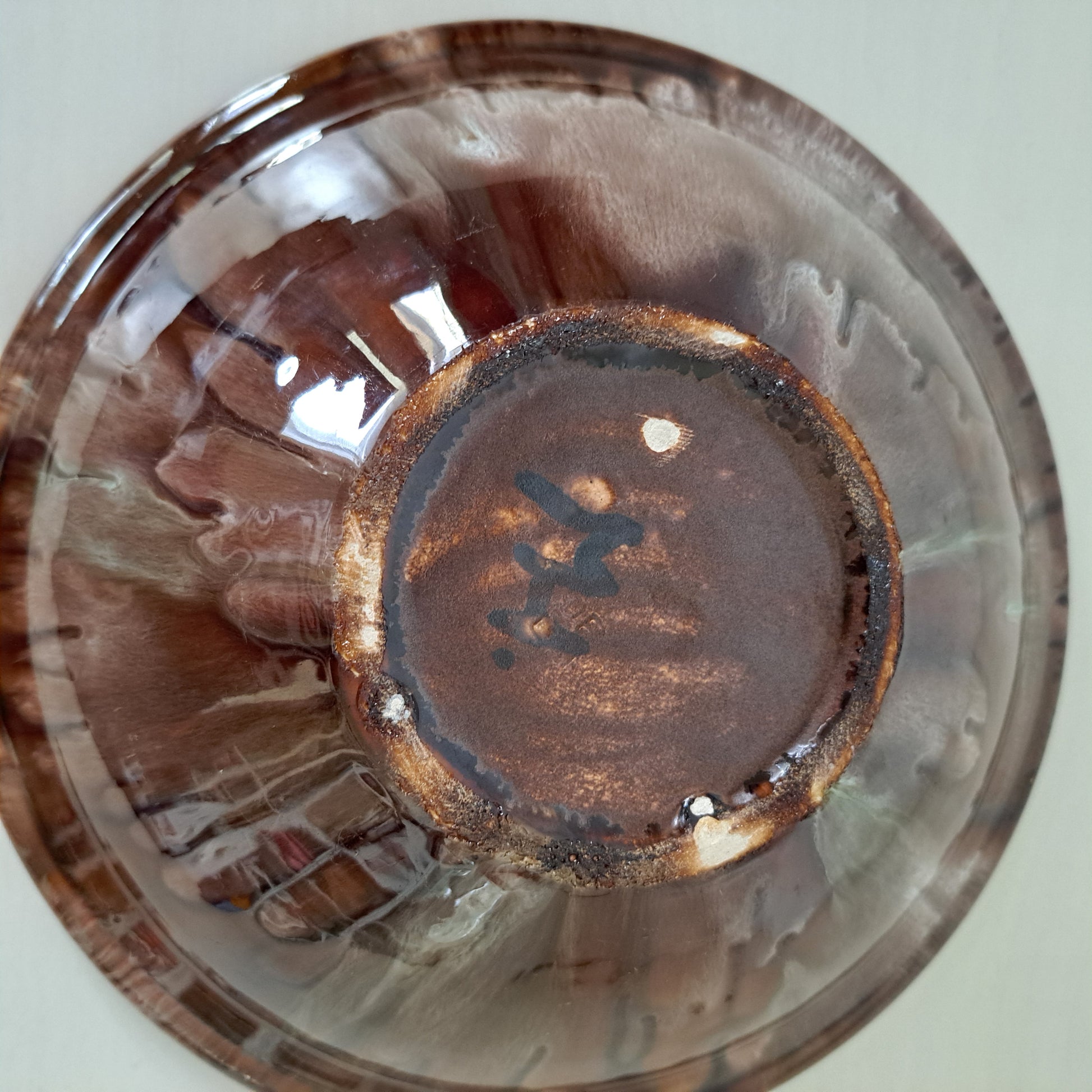 Kupittaan saven viehättävä, liukuvärjätyn ruskea kulho.
