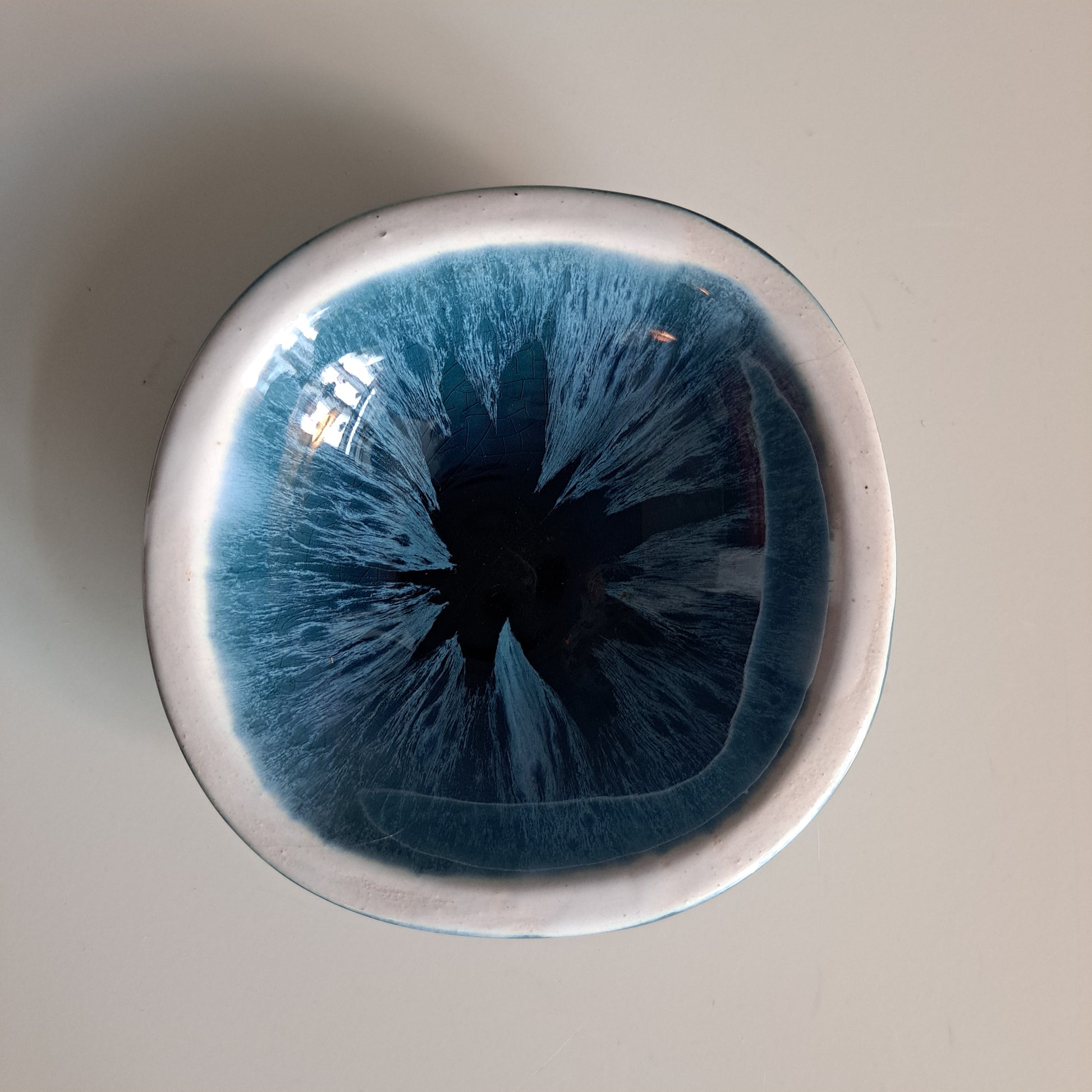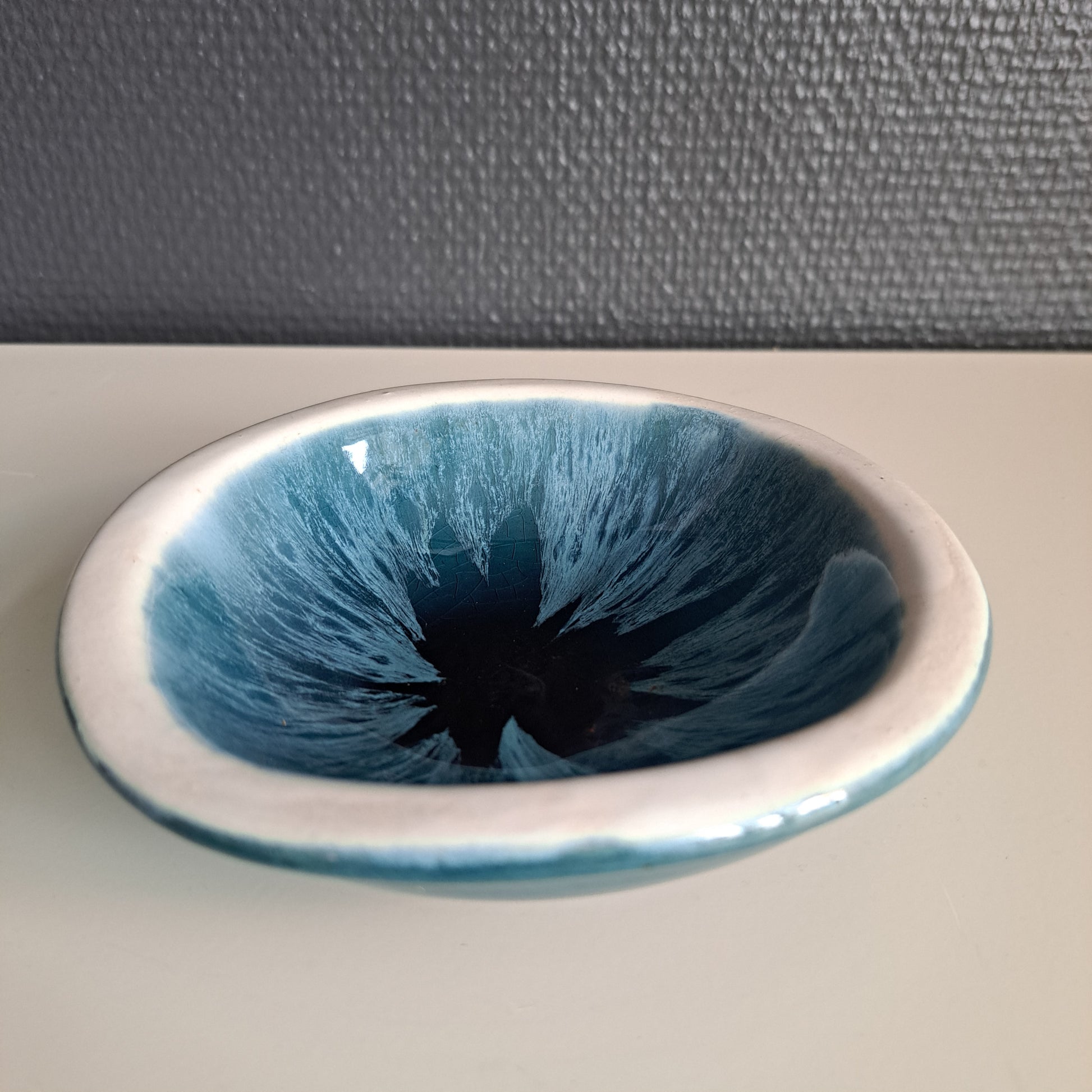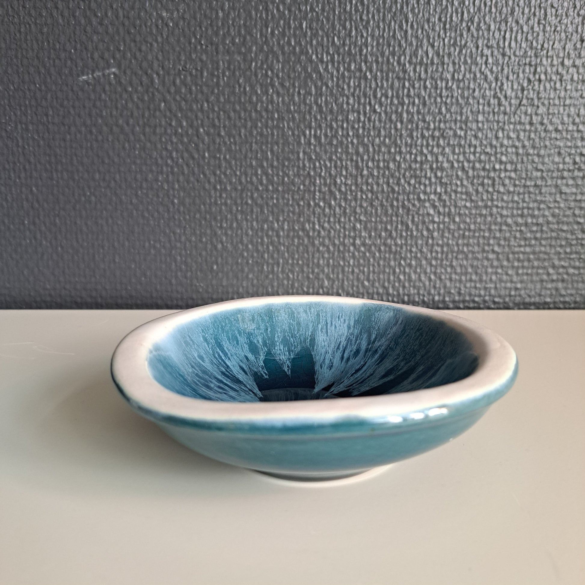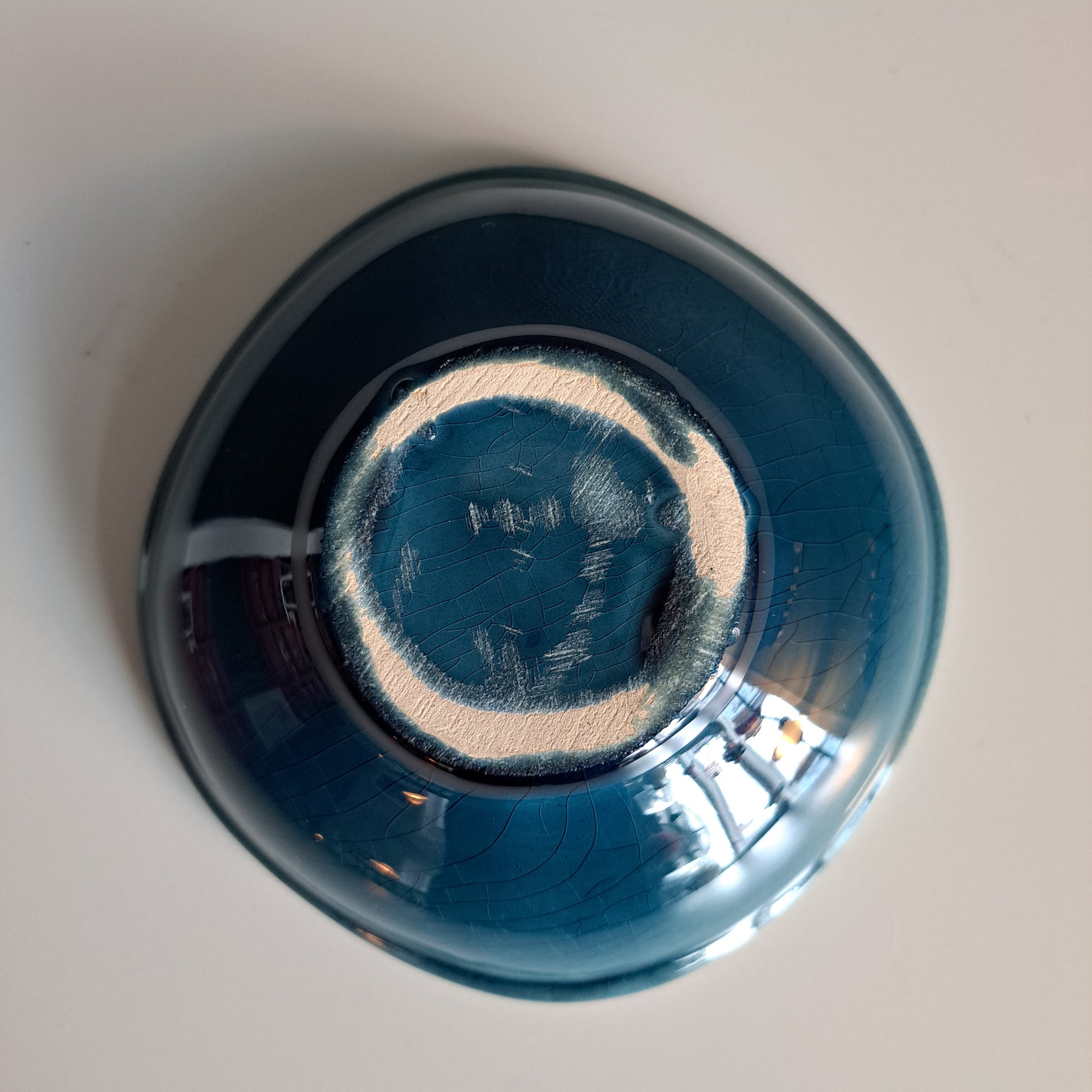Kupittaan saven tyylikäs, liukuvärjätty sini-turkoosi pieni kulho.
