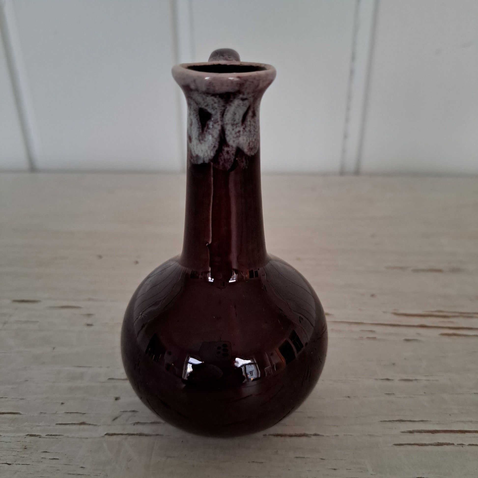 Kupittaan saven kaunis ja siro maljakko. Maljakko on liukuvärjätty, ruskean värinen.