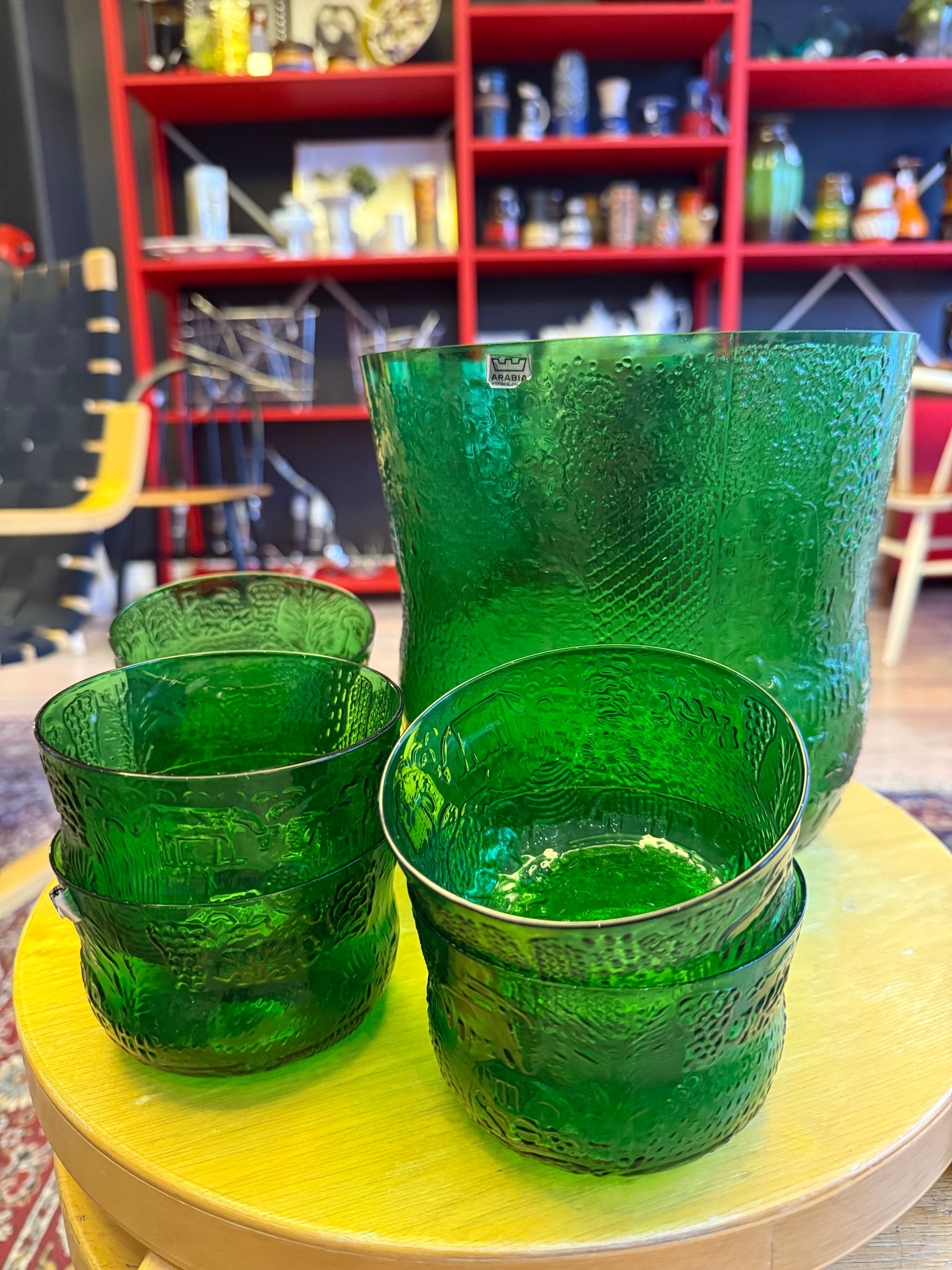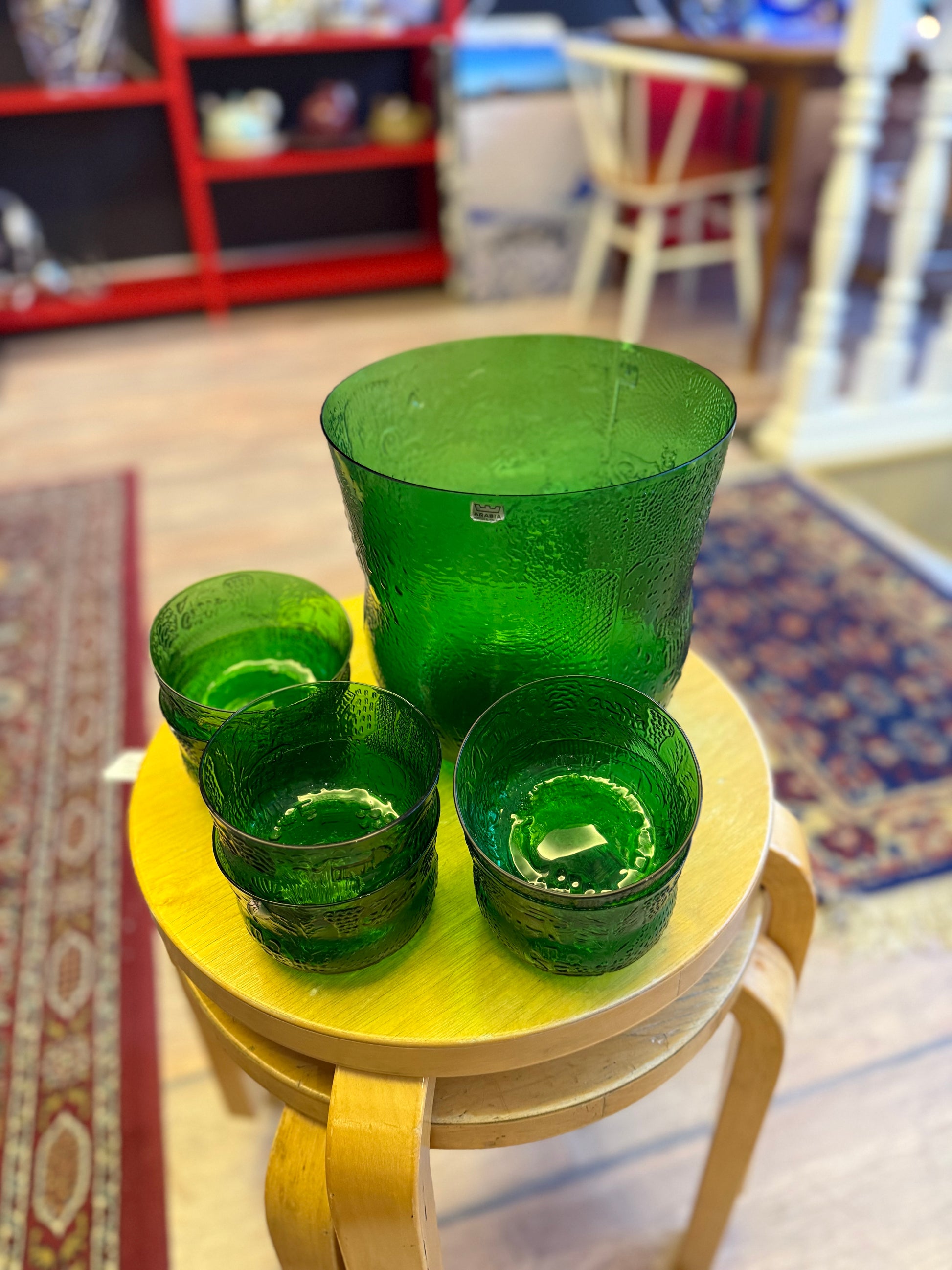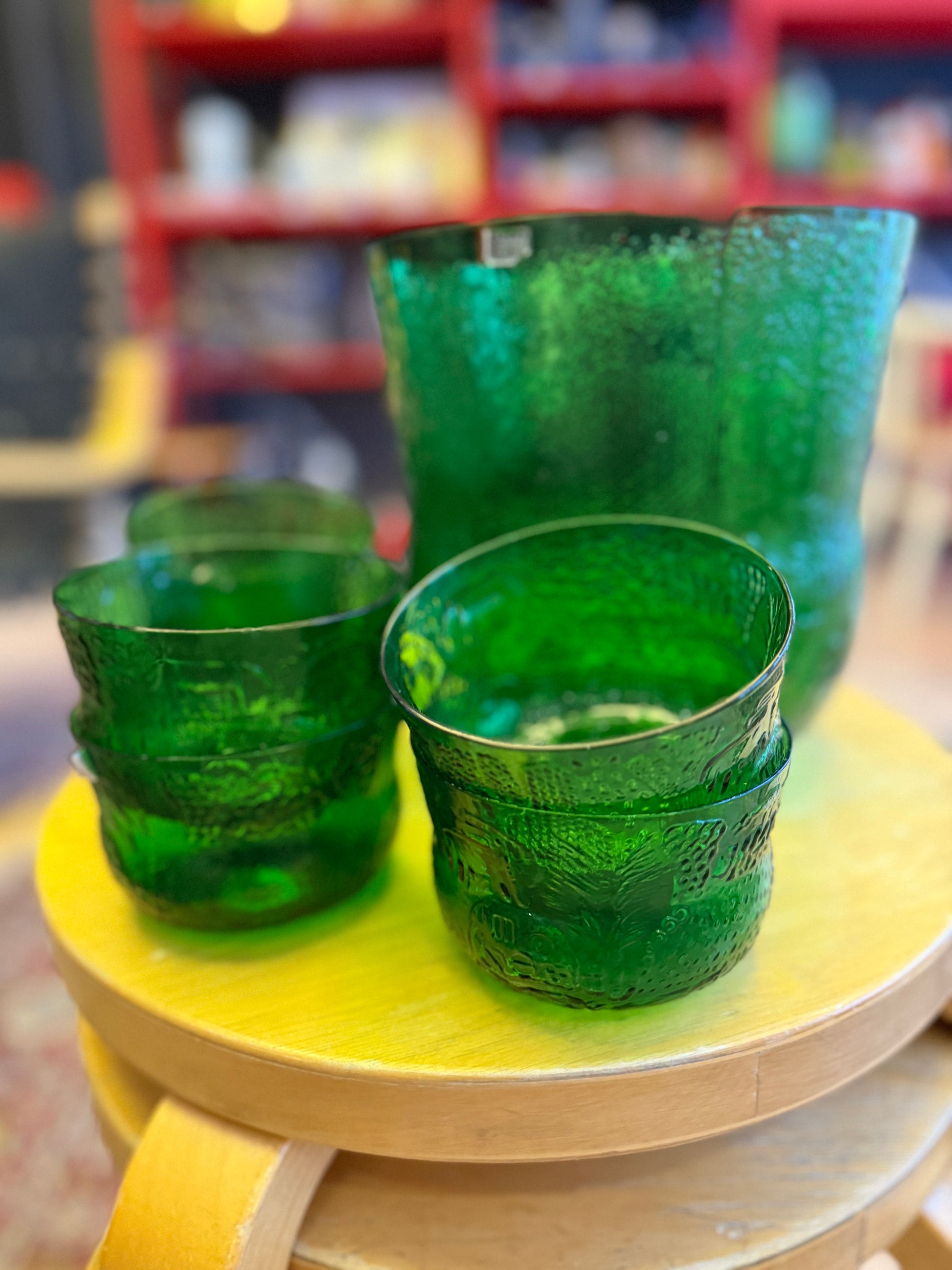 Oiva Toikan suunnittelema ja Nuutajärven lasin valmistama upean vihreät Faunat! Fauna sarja oli tuotannossa vuosina 1973-76.