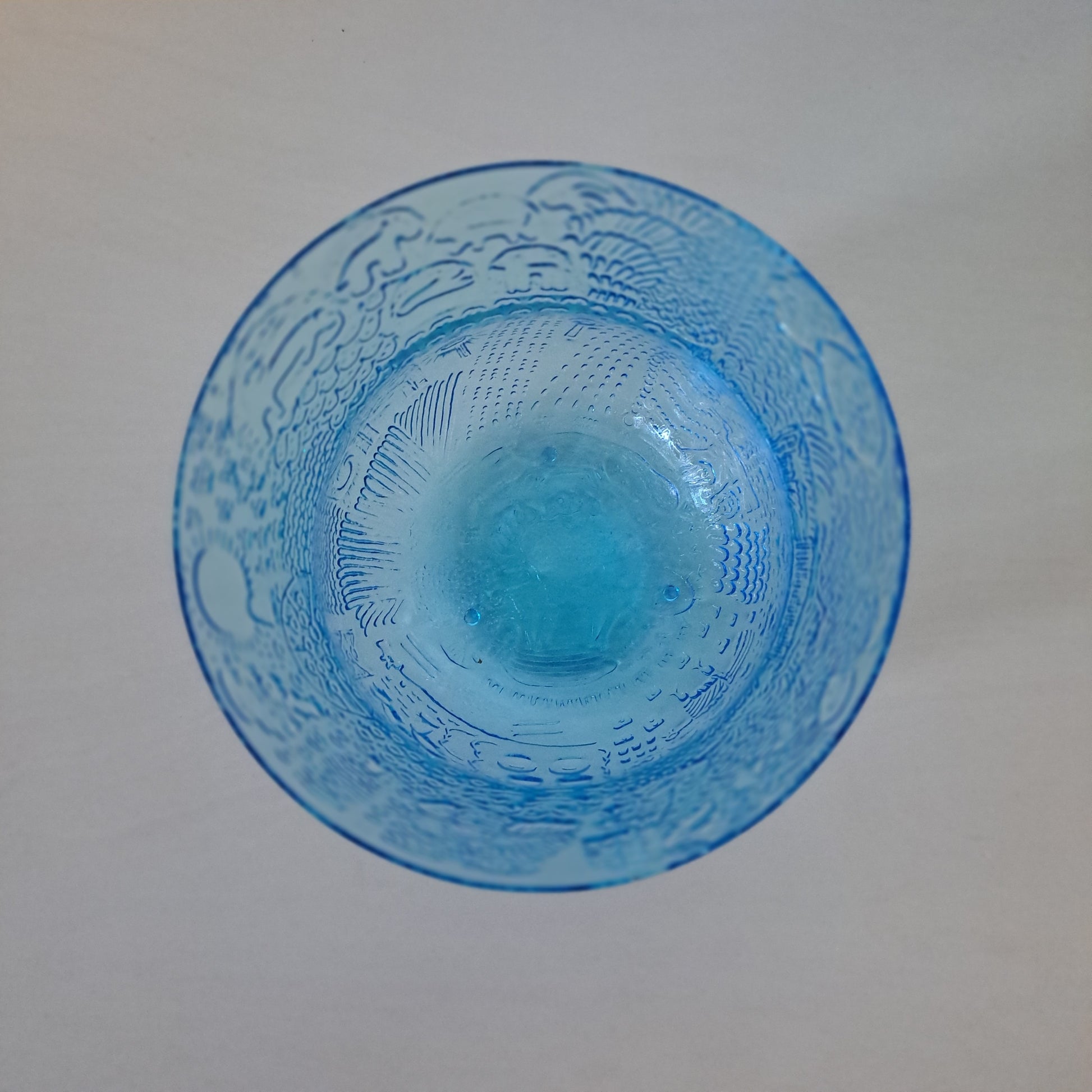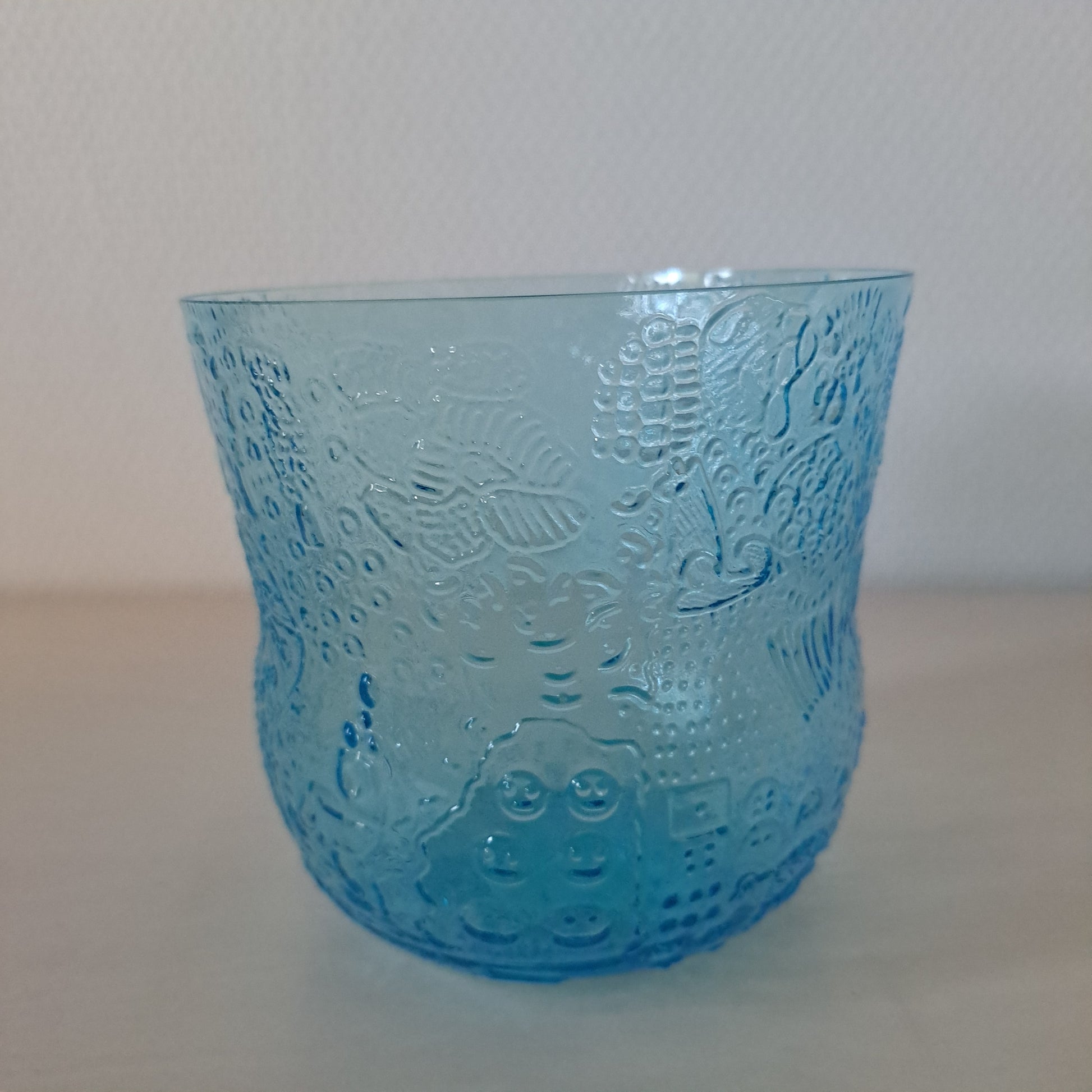 Oiva Toikan suunnittelema ja Nuutajärven lasin valmistama turkoosin värinen kulho. Fauna sarja oli tuotannossa vuosina 1973-76.
