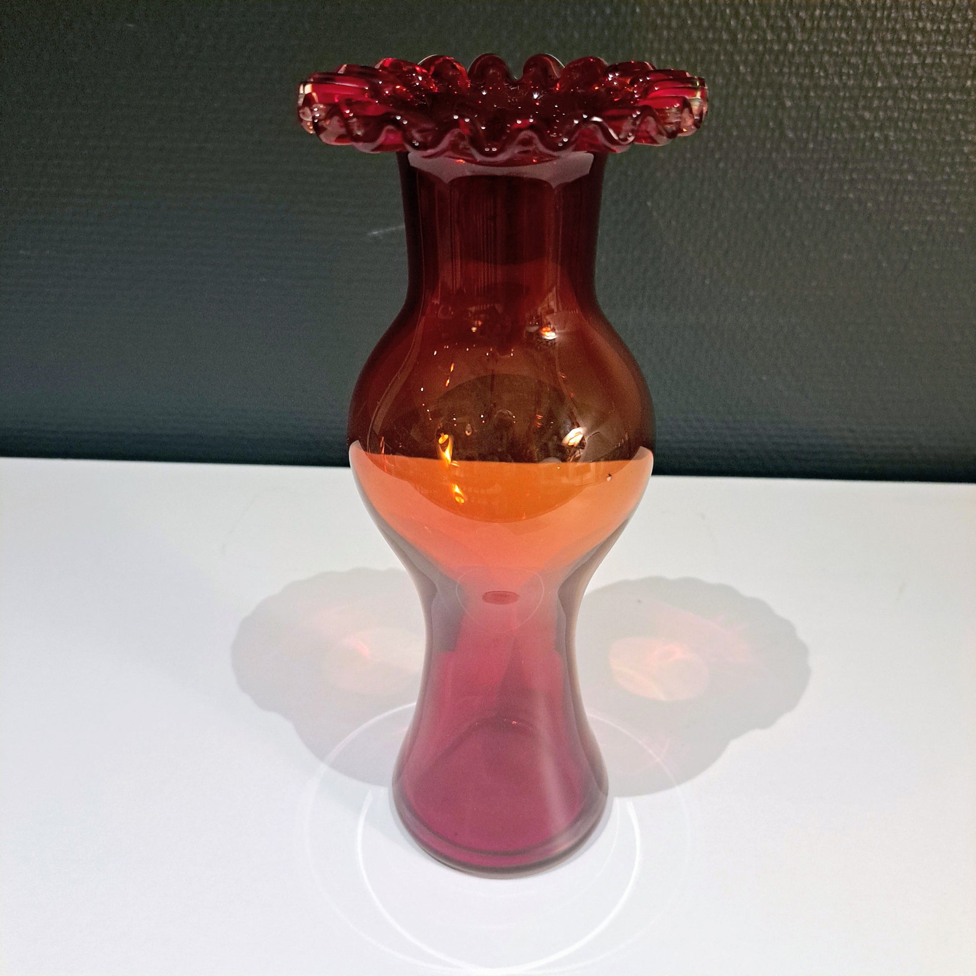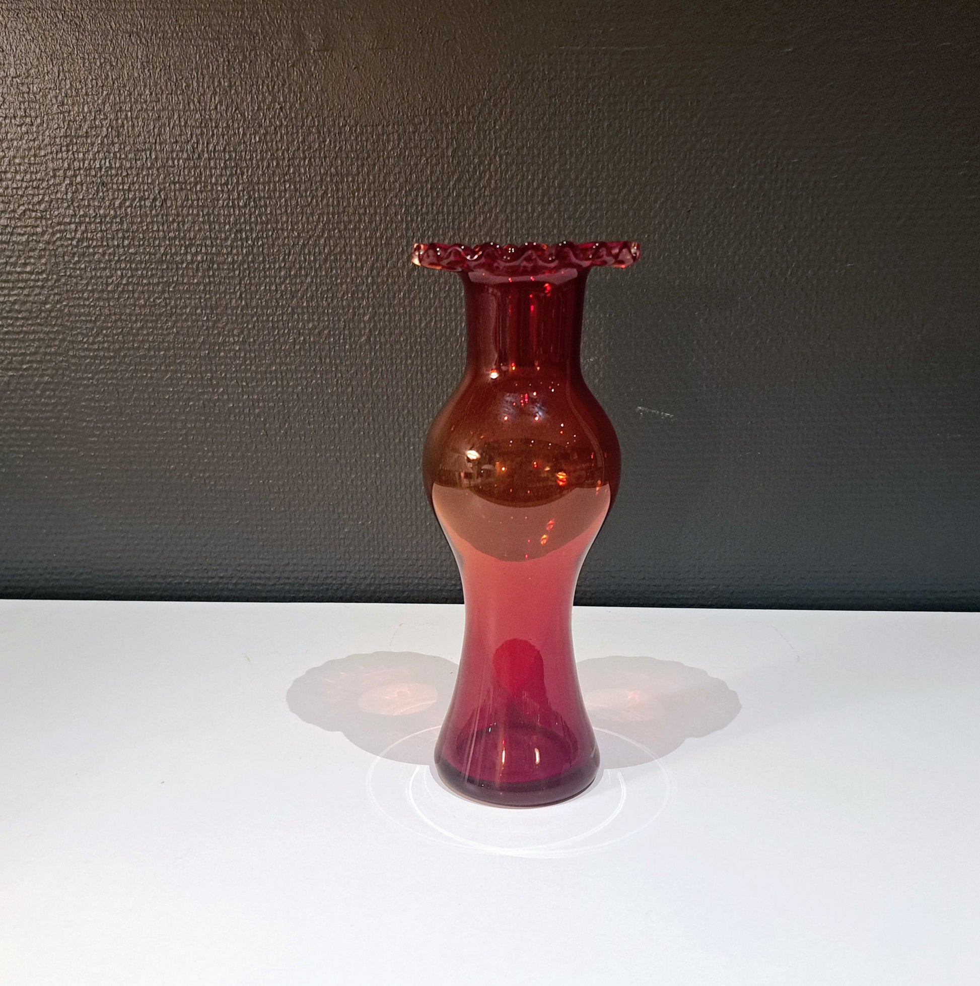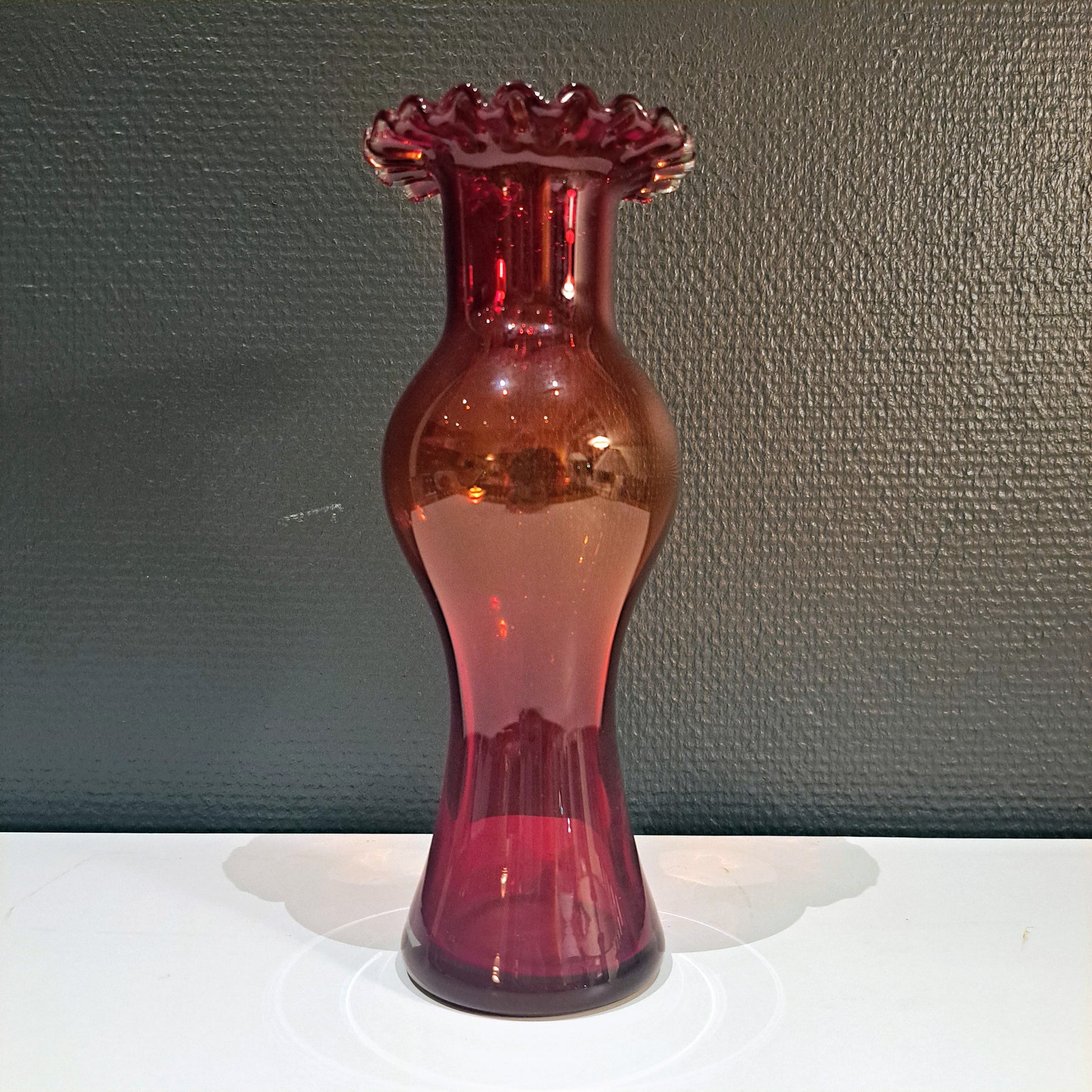 Kaunis ja linjakas, rubiininpunainen lasimaljakko!