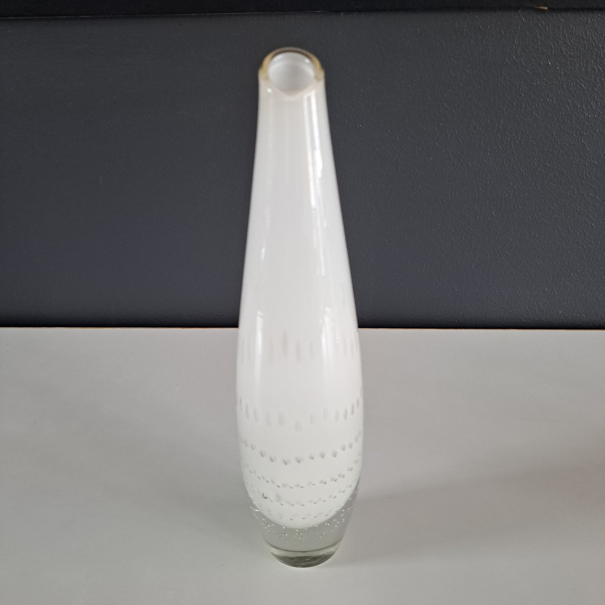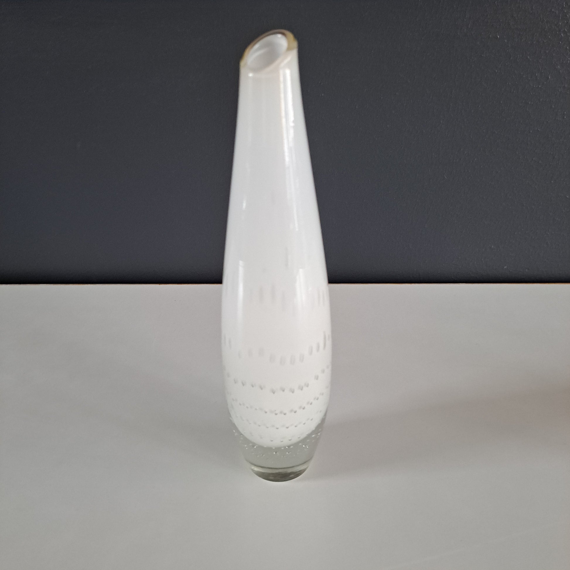 Eero Sallisen suunnittelema ja Riihimäen Lasin valmistama tyylikäs, yhden kukan maljakko. Maljakko oli tuotannossa 1960-luvun alkuun asti.