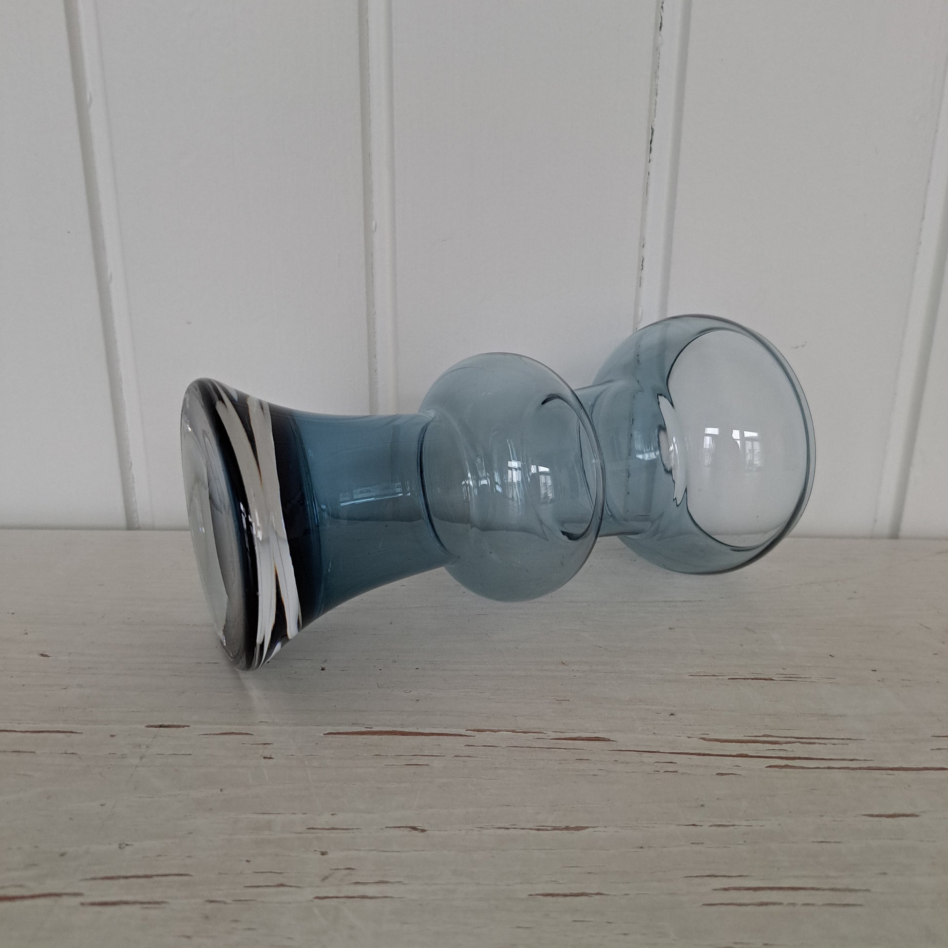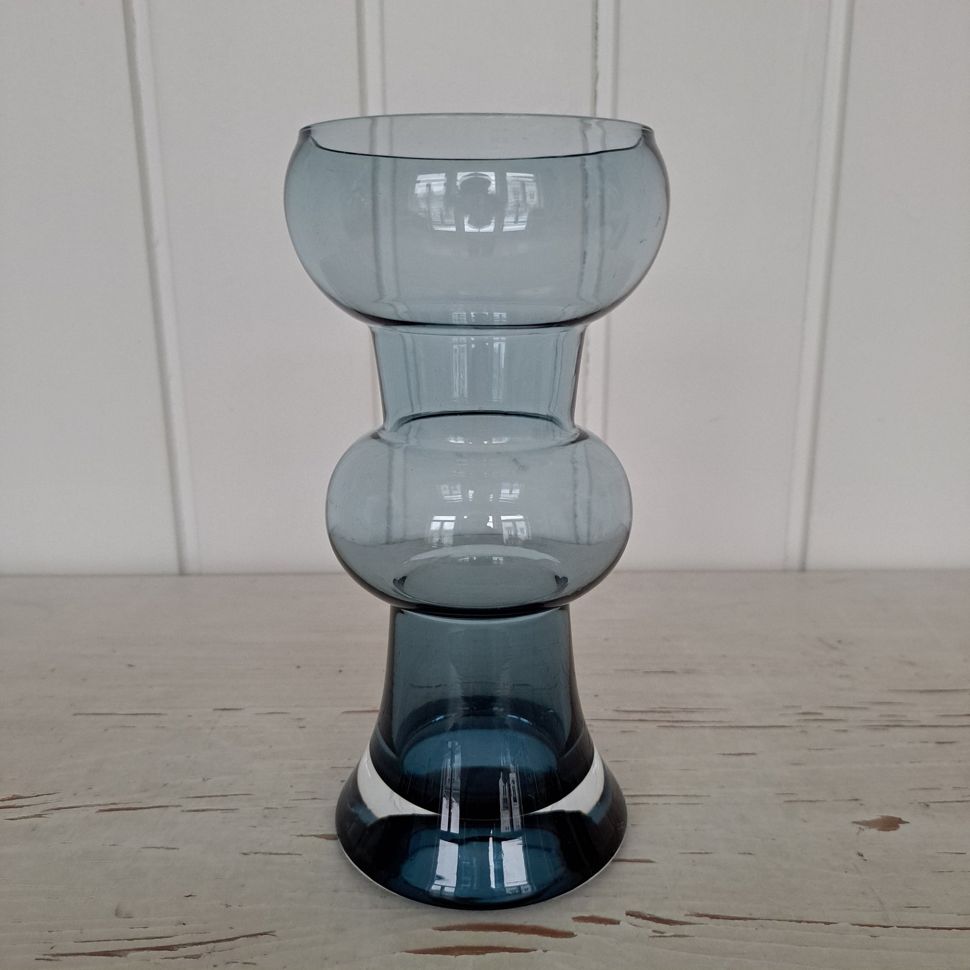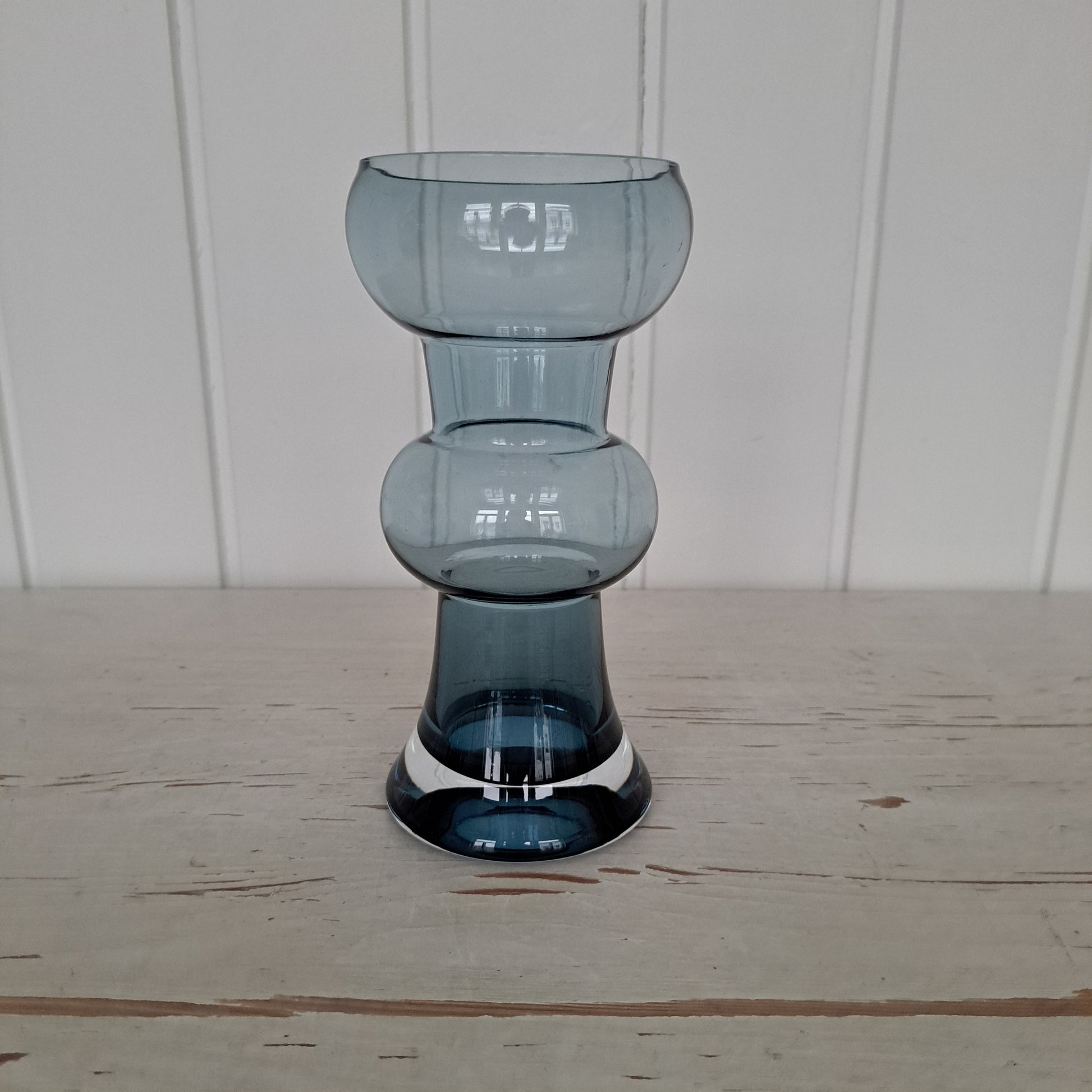 Riihimäen lasin valmistama ja Tamara Aladinin suunnittelema klassikko, Kielo maljakko. Maljakon väri on siniharmaa.