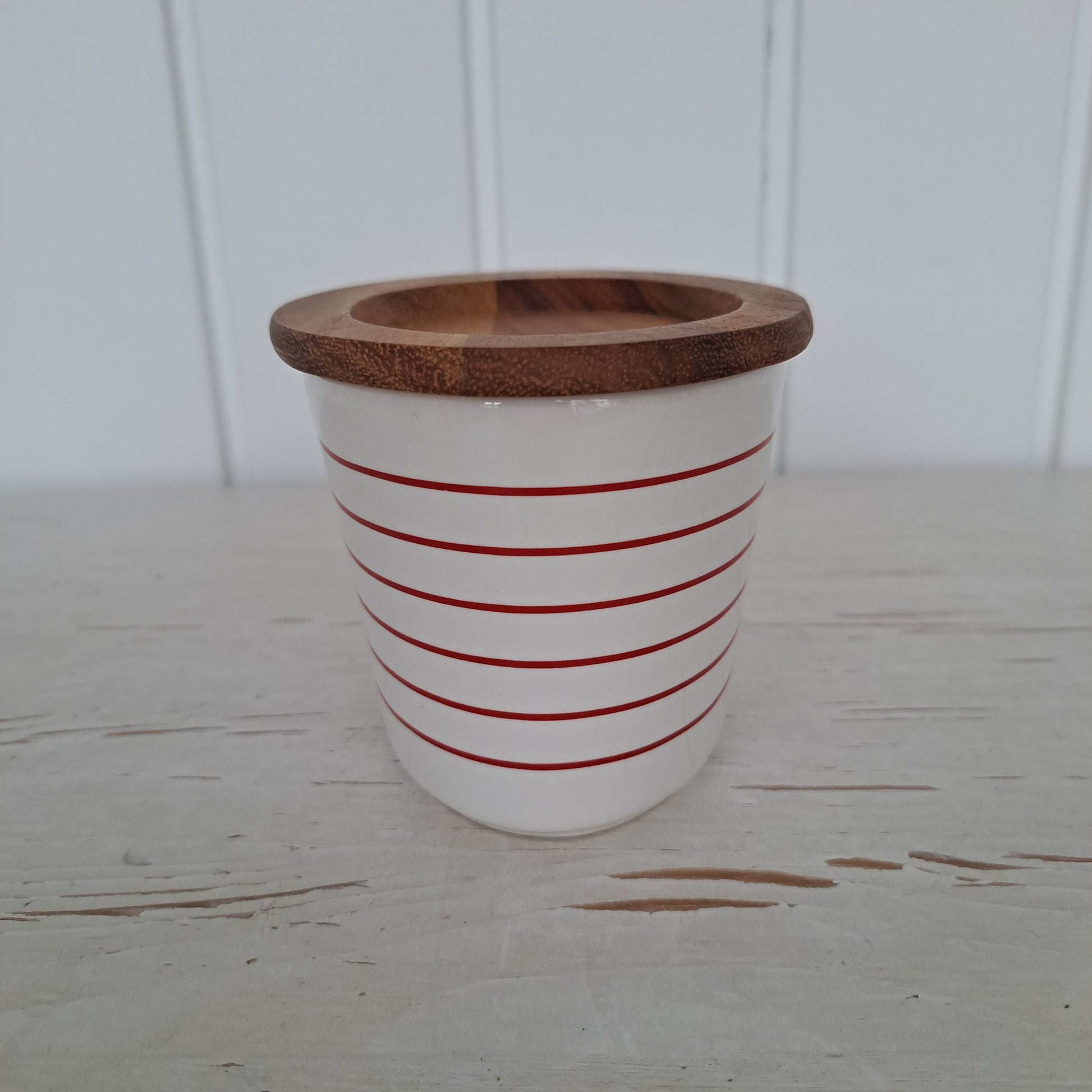 Ruotsalaisen Sagaformin valmistama ja Linda Sjunnessonin suunnittelema vuodelta 2002, raikas, kannellinen purnukka. Puinen kansi toimii myös purnukan alusena, tarjottimena ja purnukat on helppo pinota päällekkäin. yhteensopivalla. Purnukan ulko- ja sisäpinta ovat valkoiset ja ulkopuolella on koristeena punainen raidoitus, joka ulkottuu purnukan puoliväliin. Kiva purnukka esim. hillojen tarjoiluun.