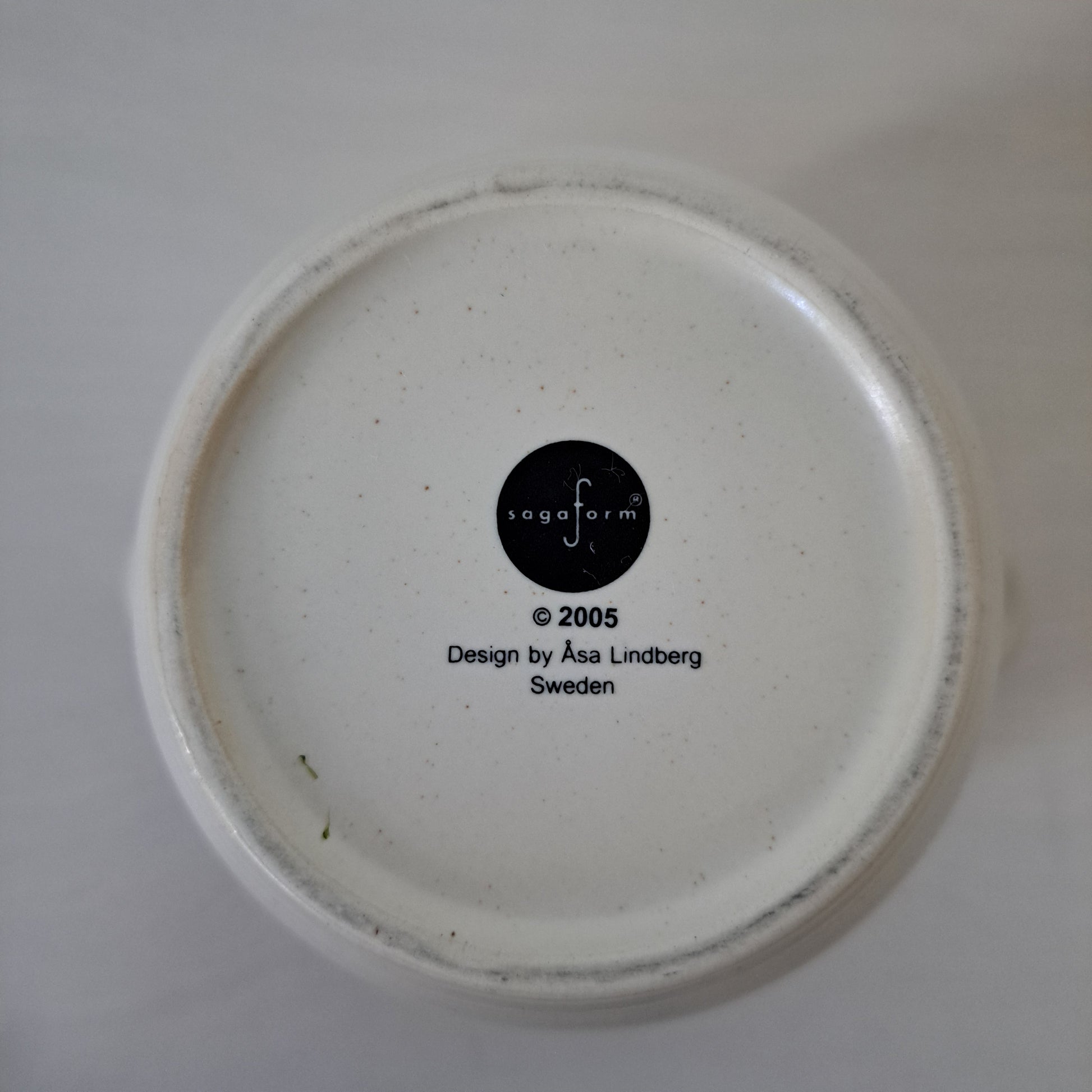 Ruotsalaisen Sagaformin raikas, kannellinen purnukka. Purnukan ulkopinta on valkoinen ja kansi sekä sisäpinta ovat tummansinisiä. Yläosassa kiertää vihreä koristeraita Kiva purnukka esim. hillojen tarjoiluun.