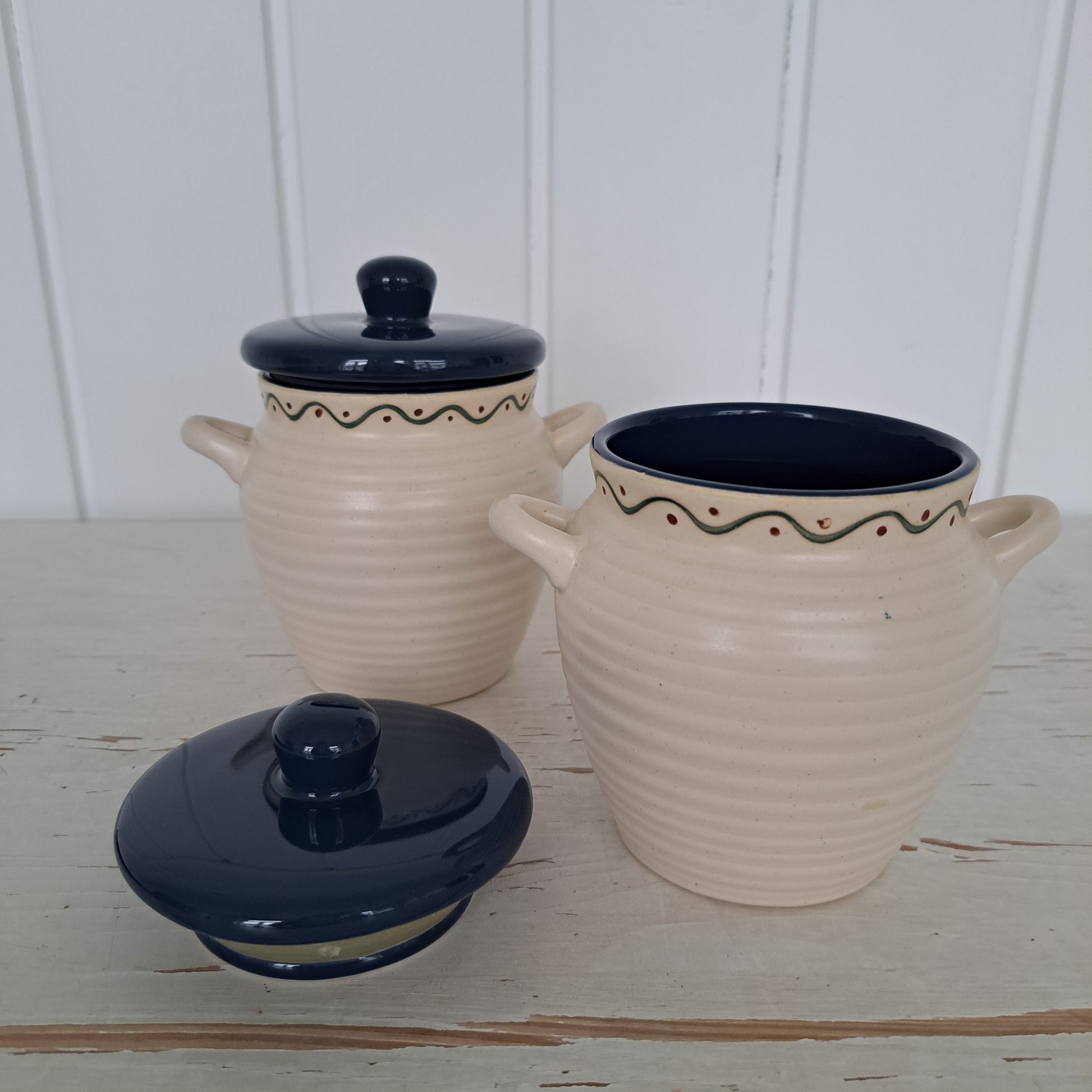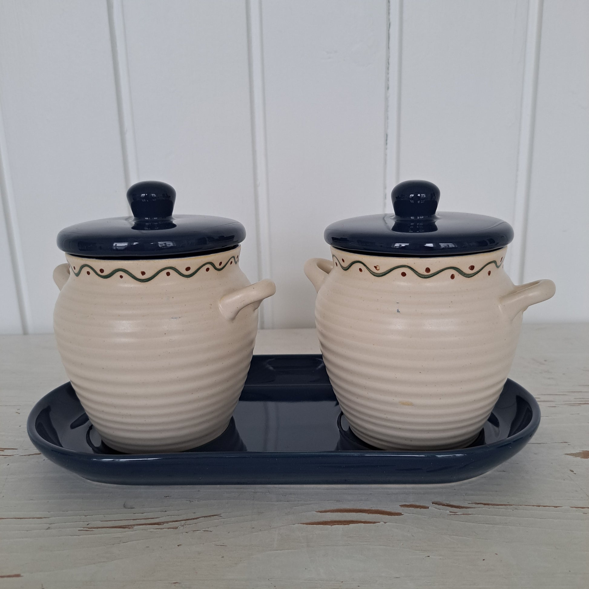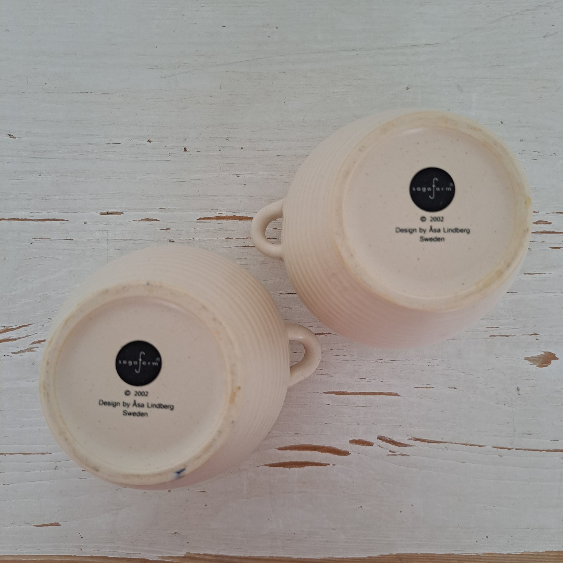 Ruotsalaisen Sagaformin raikkaat, kannelliset purnukat. Purnukoiden ulkopinta on valkoinen ja kansi sekä sisäpinta ovat tummansinisiä. Yläosassa kiertää vihreä koristeraita Purnukat, kaiksi kappaletta, muodostavat yhtenäisen kokonaisuuden sinisen aluslautasen kanssa.