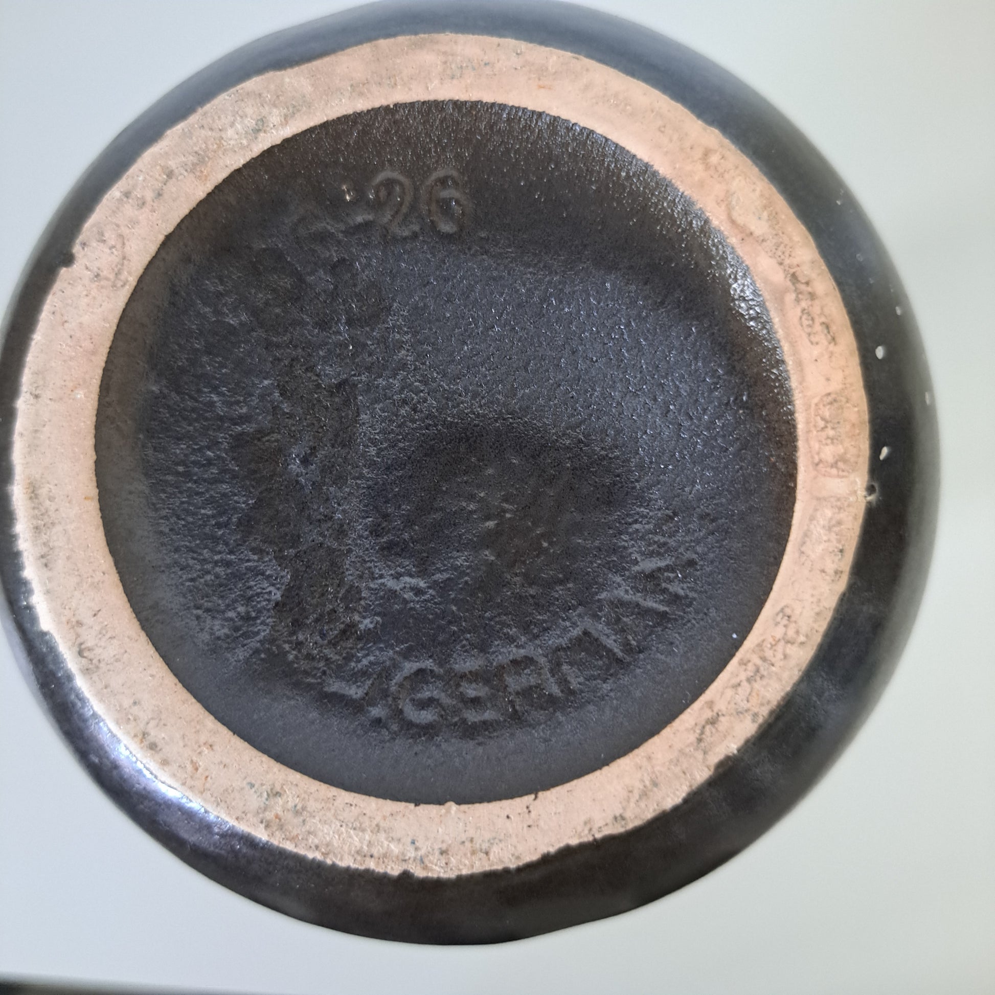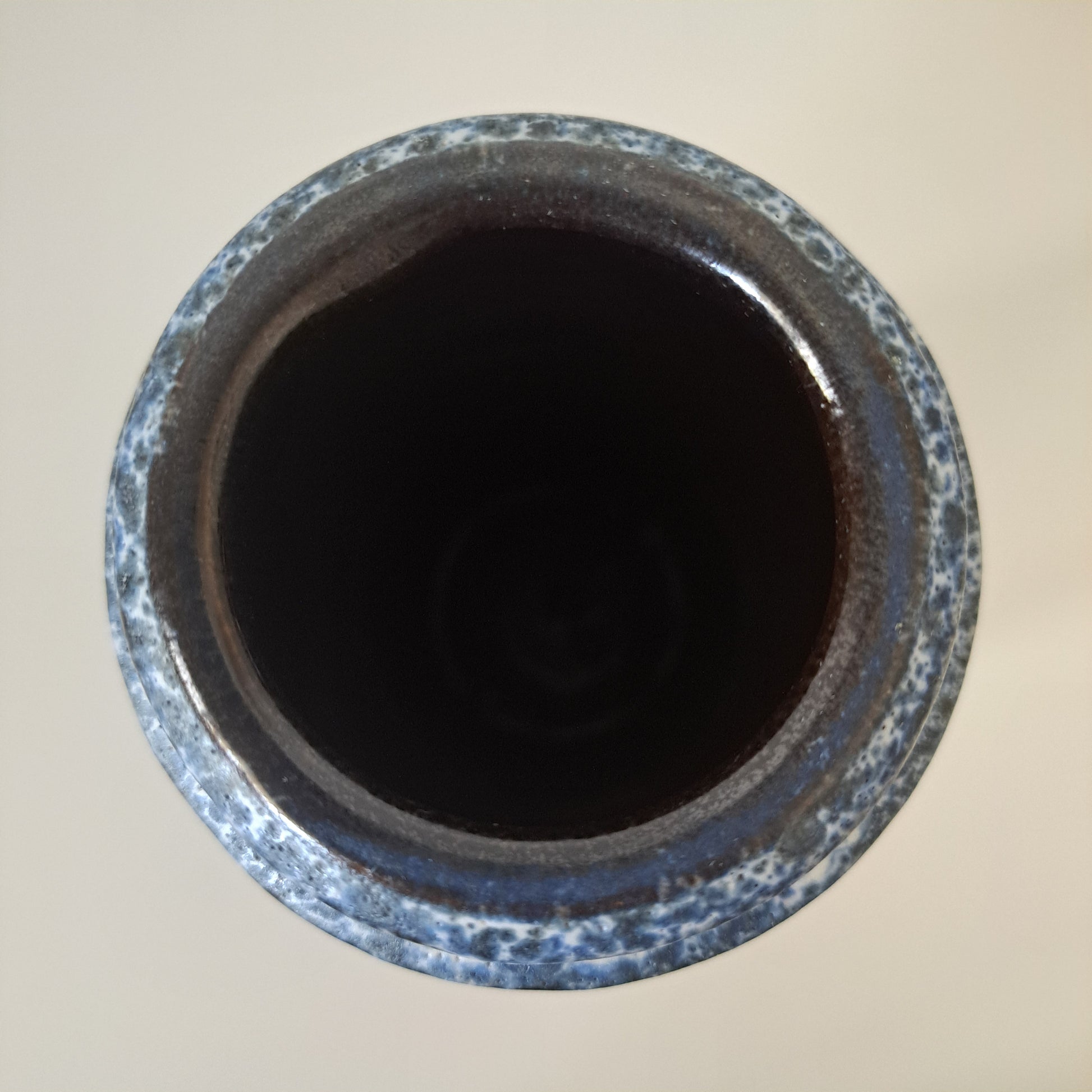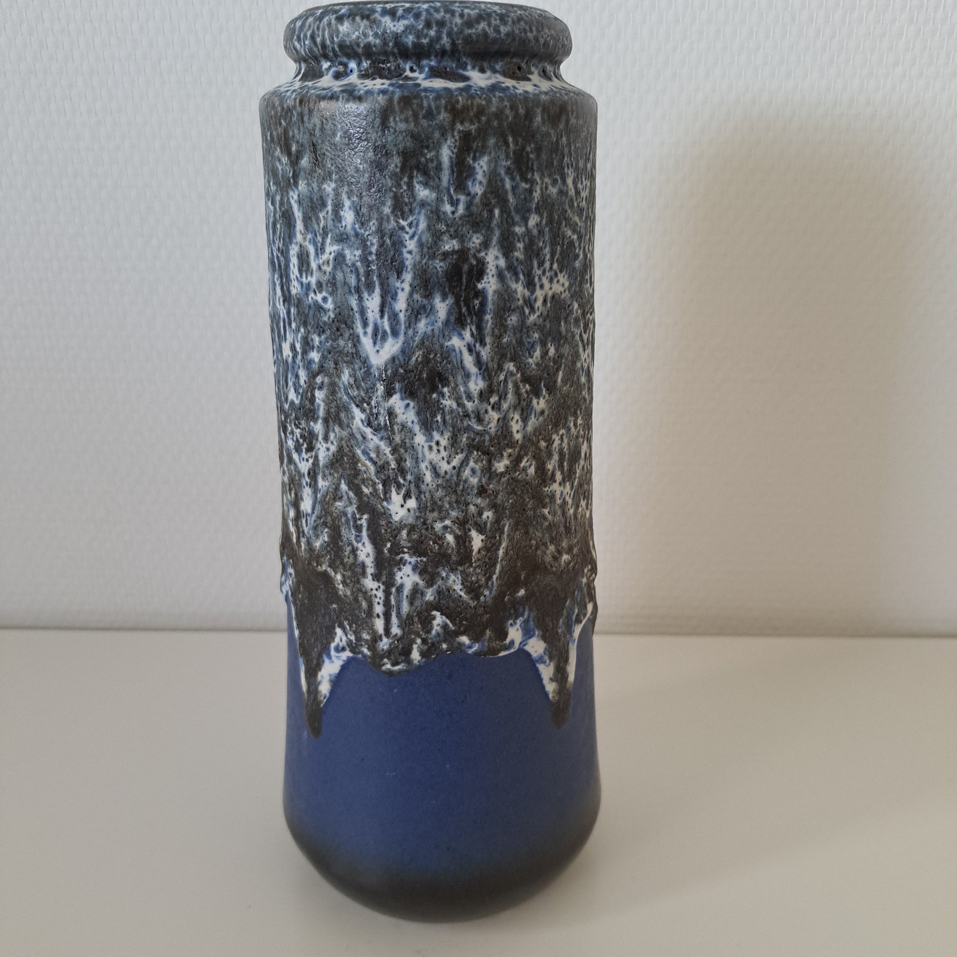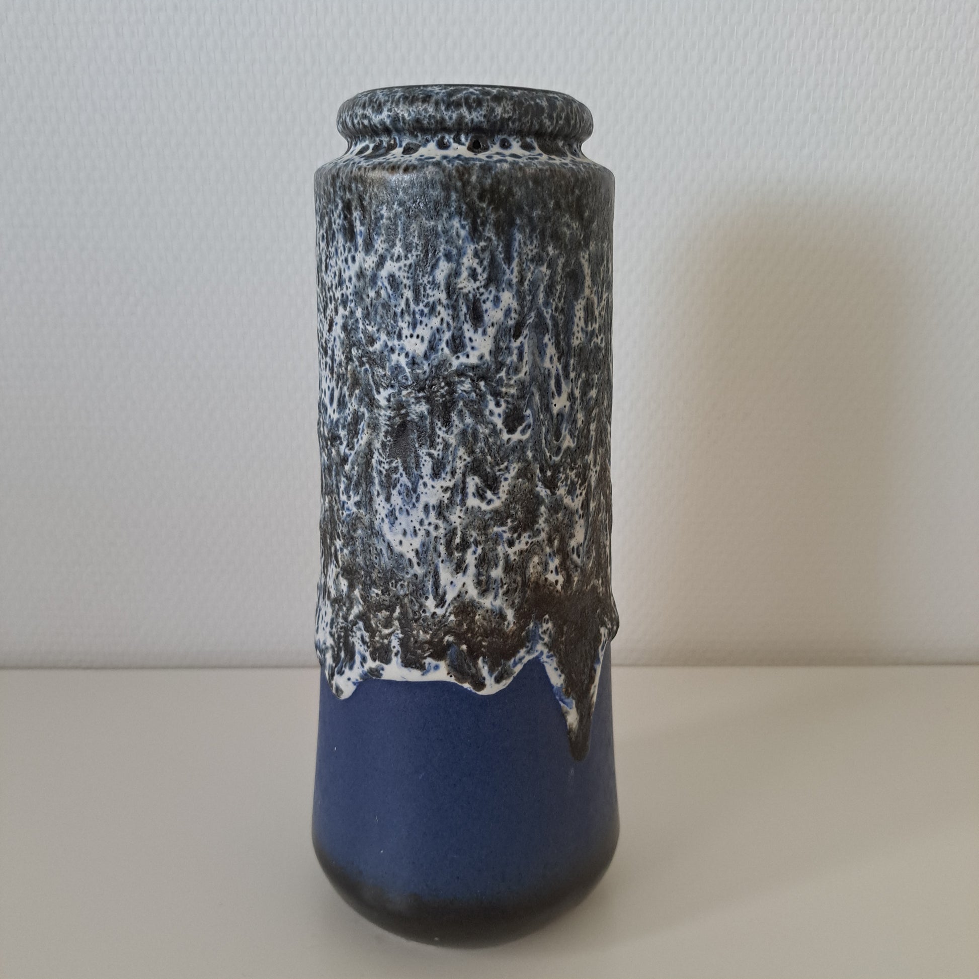 Saksalaisen Scheurich Keramikin 1970-luvulla valmistama upea ja uniikki vaasi! Maljakon yläosassa on tyypillinen laavaglaseeraus ja alaosa on tummansininen ja sileä. Fat-lava tyyli.