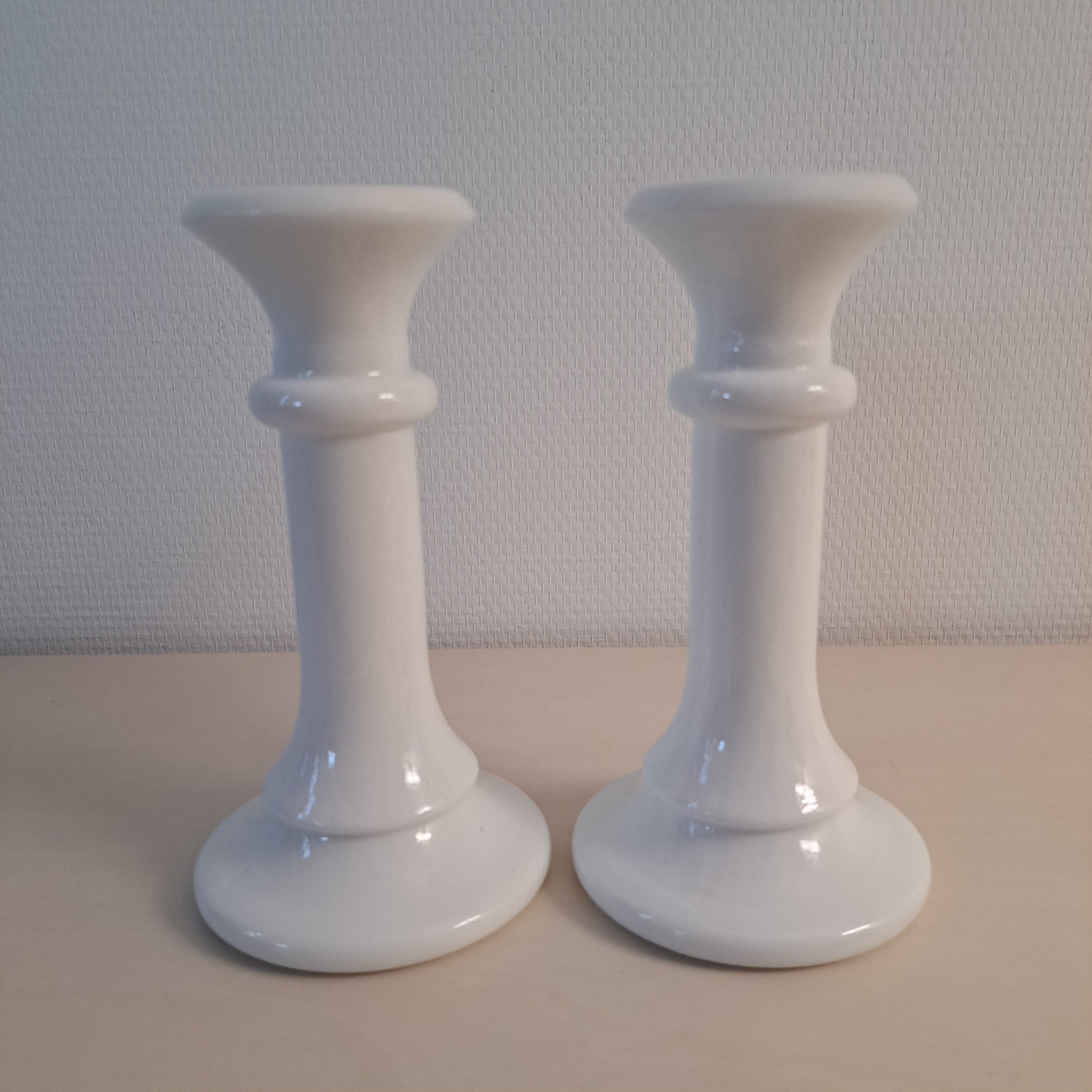 Tukevat ja ryhdikkäät, valkoiset kynttilänjalat, jotka on valmistettu valkoisesta lasista. Ihastuttavat ja monikäyttöiset, niin talvella kuin kesälläkin!