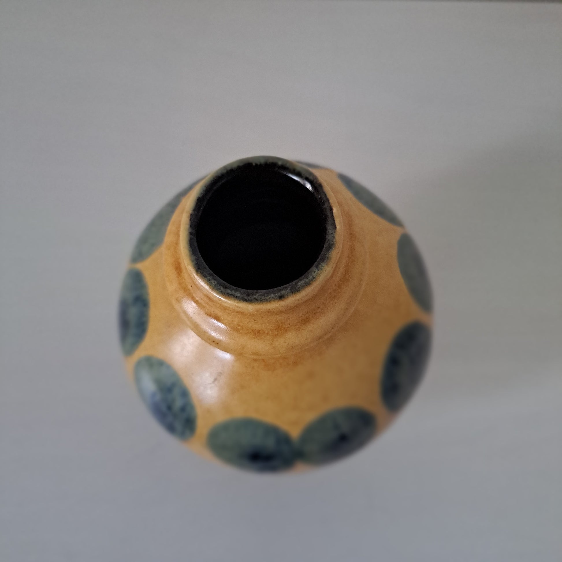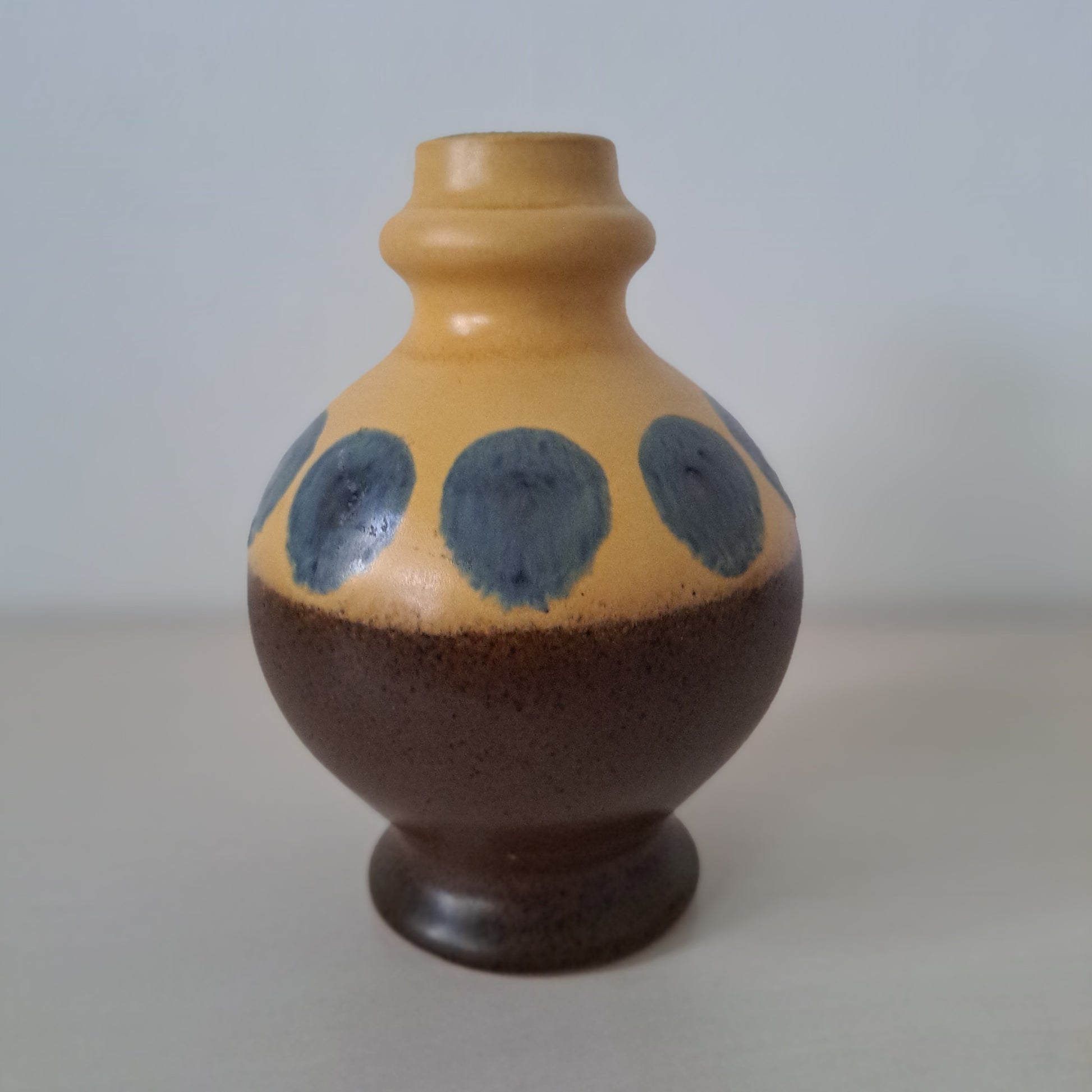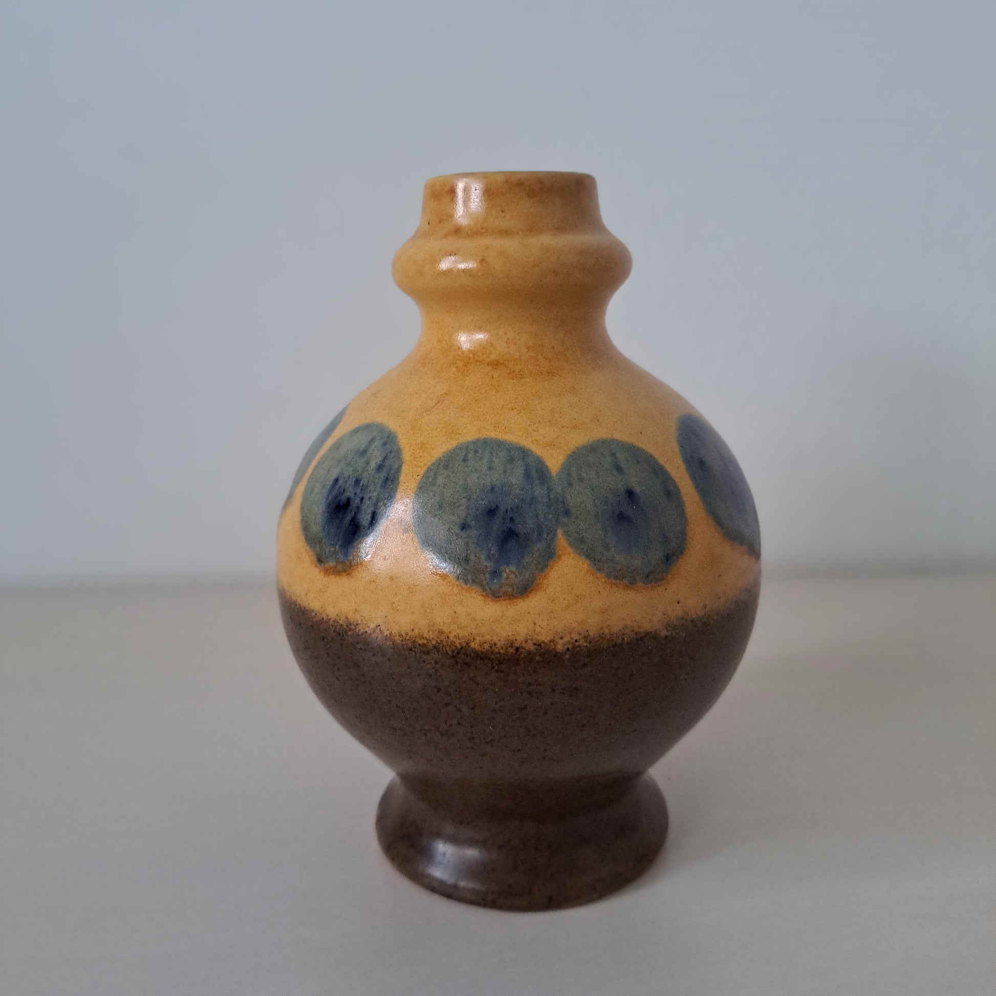 Saksalaisen VEB Haldenslebenin valmistama kaunis ja muodokas vaasi 1960-luvulta. Upea pallomainen muotoilu ja hillitty värimaailma!