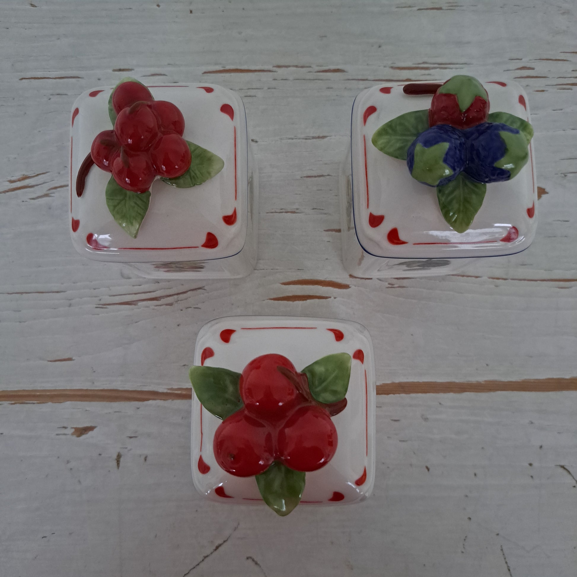Mitat: hillopurkkien korkeus 12,5CM, halkaisija 6,8CM. Tarjottimen leveys 32CM (kahvasta kahvaan) ja syvyys 11,5CM