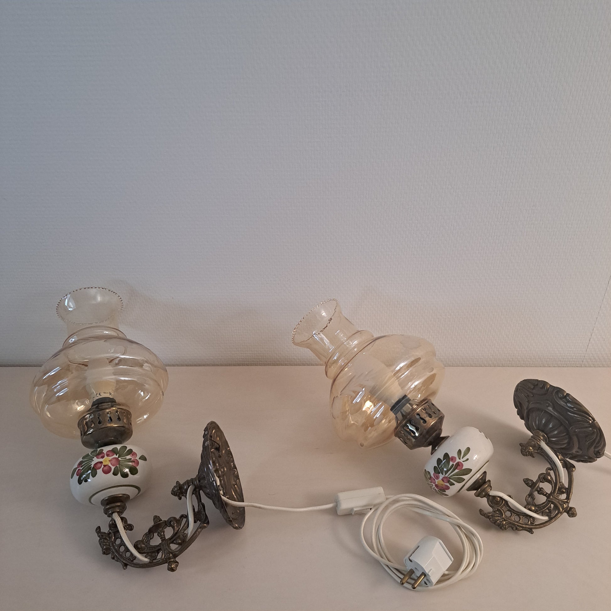 Kauniit lampetit, jotka koostuvat herkästä, pastellinsävyisestä lasikuvusta sekä metallisesta rungosta että vaaleasta, keraamisesta osasta. Sanallisesti lampetteja on vaikea kuvailla, kuvat kertovat enemmän!